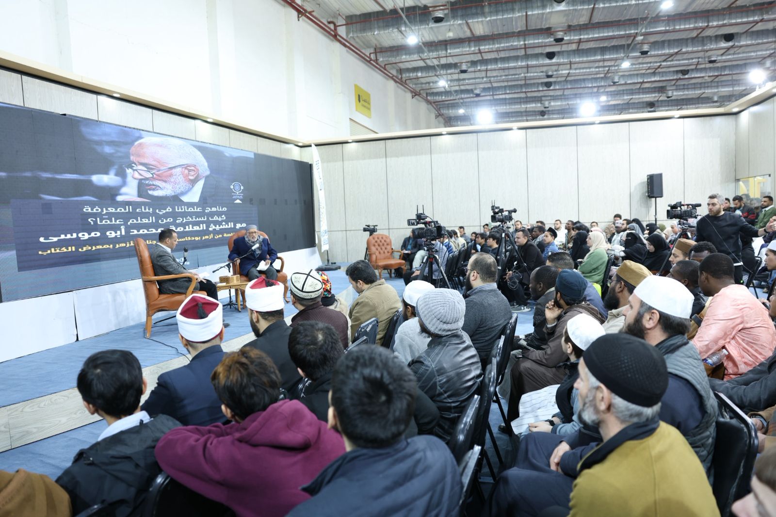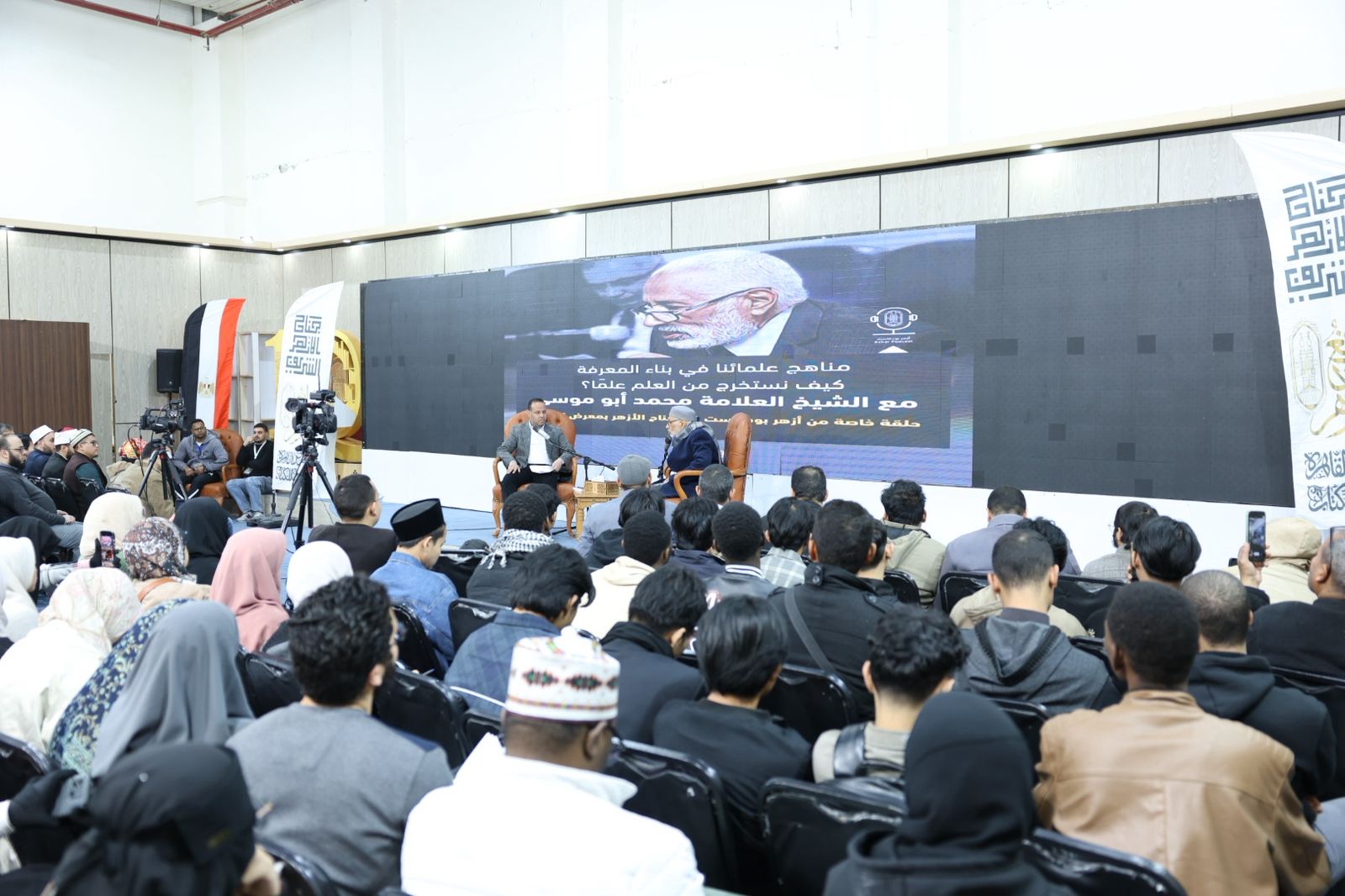عقد جناح الأزهر الشريف بمعرض القاهرة الدولي للكتاب ندوة فكرية بعنوان «مناهج علمائنا في بناء المعرفة»، بمشاركة الأستاذ الدكتور محمد أبو موسى، عضو هيئة كبار العلماء بالأزهر الشريف والعالم اللغوي البارز، وأدار الحوار الدكتور ياسين عطية، المدرس بقسم البلاغة والنقد بكلية اللغة العربية بالقاهرة.