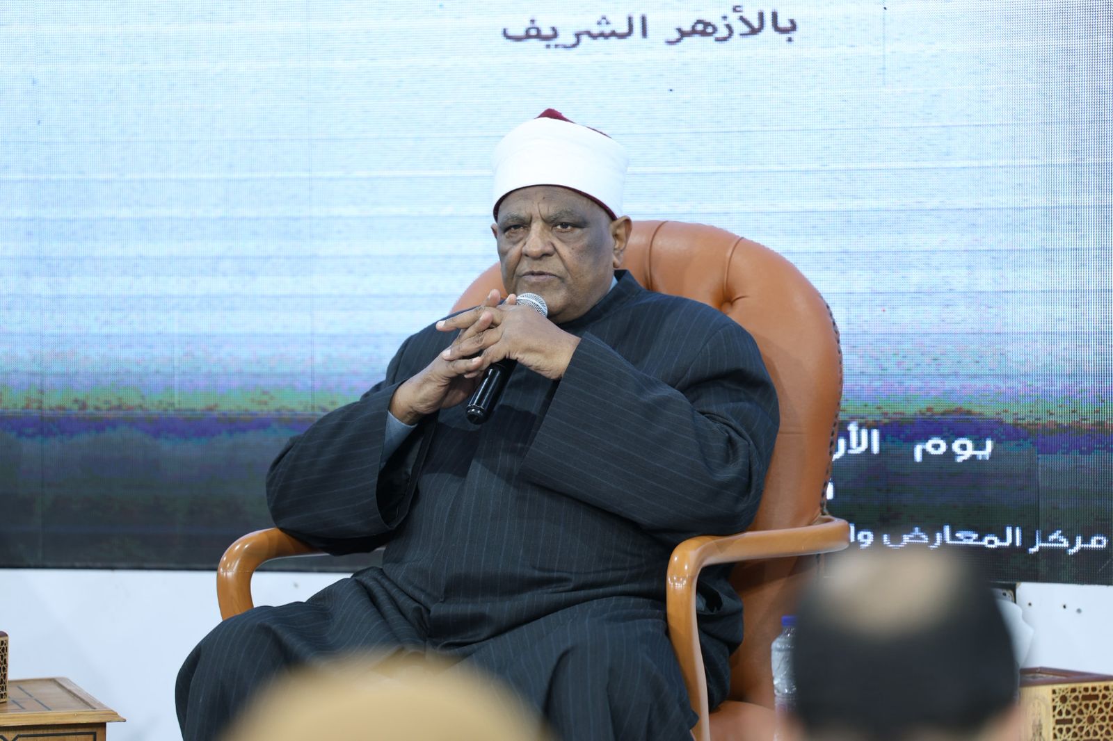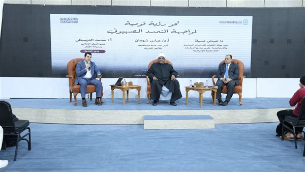 نظم جناح الأزهر بمعرض القاهرة الدولي للكتاب، في دورته السابعة والخمسين، اليوم الأربعاء. ندوة بعنوان «نحو رؤية قومية لمواجهة التمدد الصهيوني»، حاضر فيها الأستاذ الدكتور عباس شومان، أمين عام هيئة كبار العلماء بالأزهر الشريف ورئيس مجلس إدارة المنظمة العالمية لخريجي الأزهر، والدكتور صبحي عسيلة، الخبير بمركز الدراسات السياسية والاستراتيجية بالأهرام ورئيس برنامج الدراسات الفلسطينية والإسرائيلية بالمركز، وأدار الحوار الإعلامي محمد الديسطي، عضو المركز الإعلامي بمشيخة الأزهر، وذلك ضمن اهتمام الأزهر بالقضايا المصيرية للأمة وتعزيز الوعي الوطني والقومي.