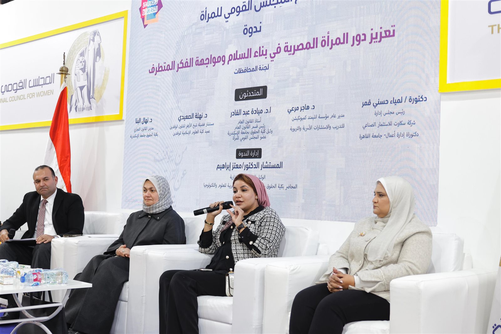 نظّمت لجنة المحافظات ندوة بعنوان «تعزيز دور المرأة المصرية في بناء السلام ومواجهة الفكر المتطرف»، وذلك بجناح المجلس بالمعرض، في إطار حرص المجلس على دعم دور المرأة في ترسيخ قيم السلام المجتمعي، ومواجهة الفكر المتطرف، وتعزيز الوعي بدورها الوطني في حماية المجتمع.