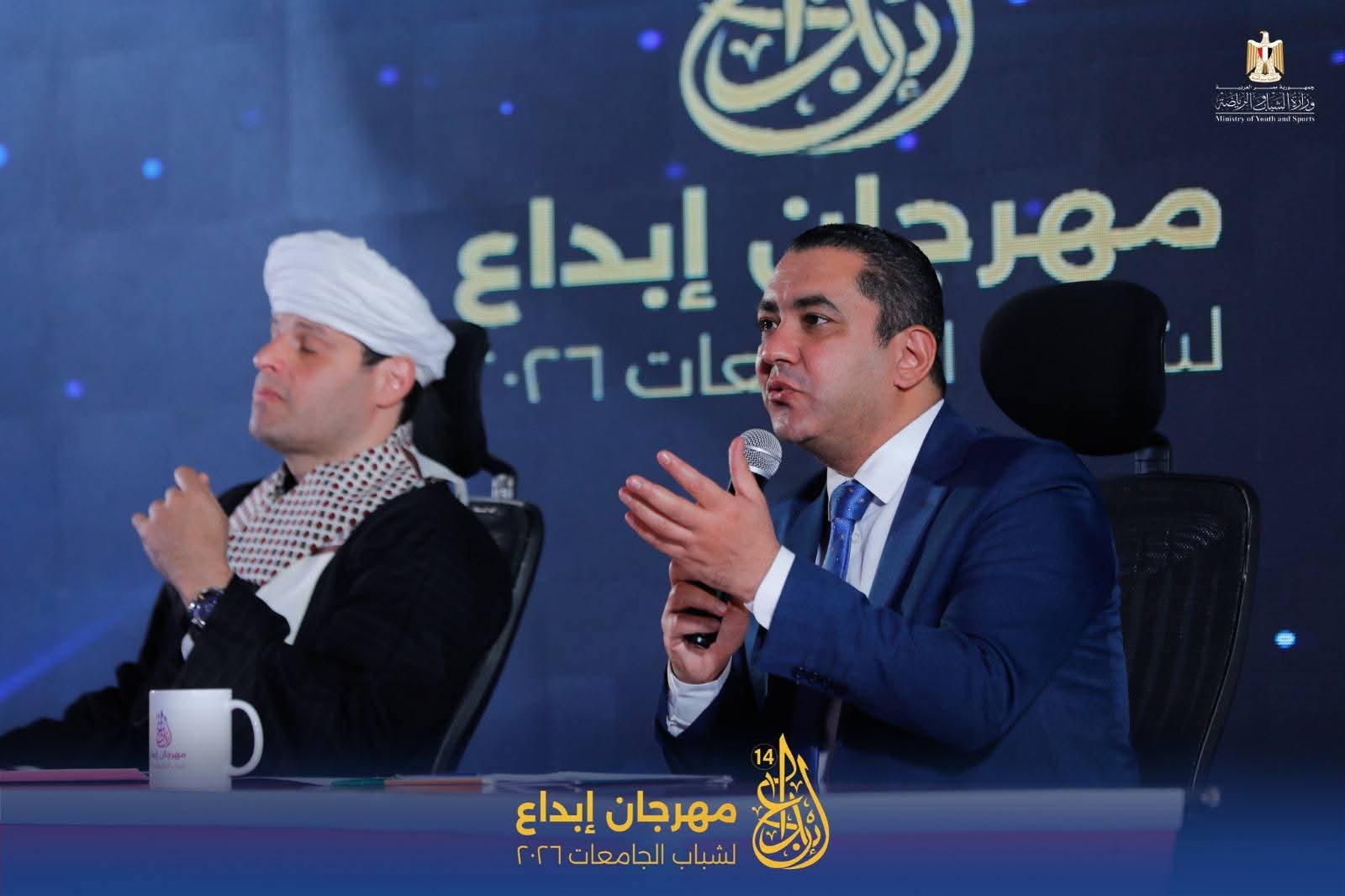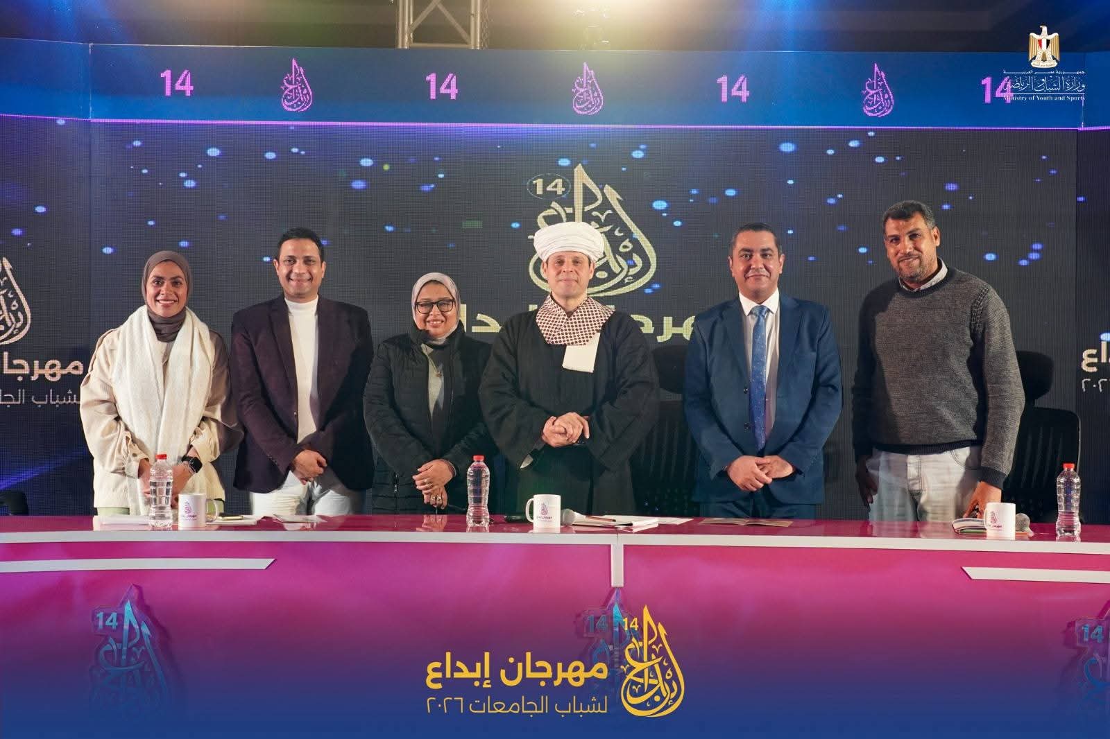 تواصل وزارة الشباب والرياضة، من خلال الإدارة المركزية لتنمية الشباب، الإدارة العامة للبرامج الثقافية والفنية، فعاليات تحكيم مسابقة مهرجان «إبداع» الموسم الرابع عشر لشباب الجامعات، برعاية فخامة الرئيس عبد الفتاح السيسي، وذلك بمشاركة شباب الجامعات والمعاهد والأكاديميات الحكومية والخاصة من مختلف محافظات الجمهورية.