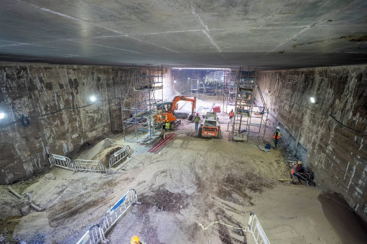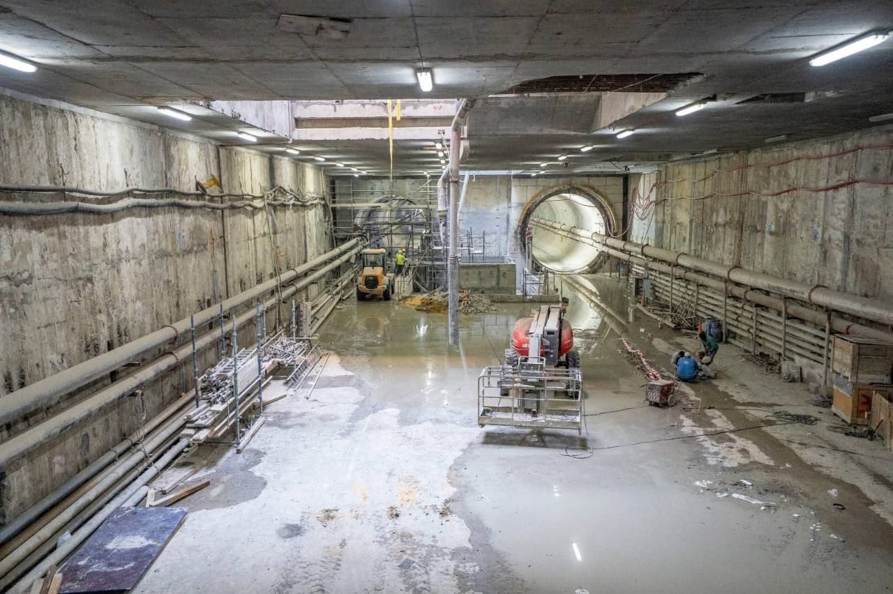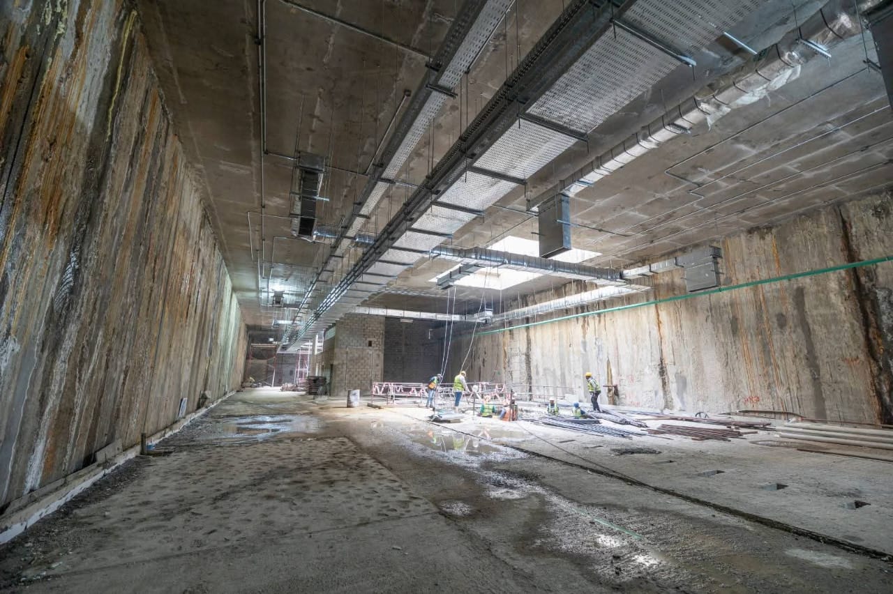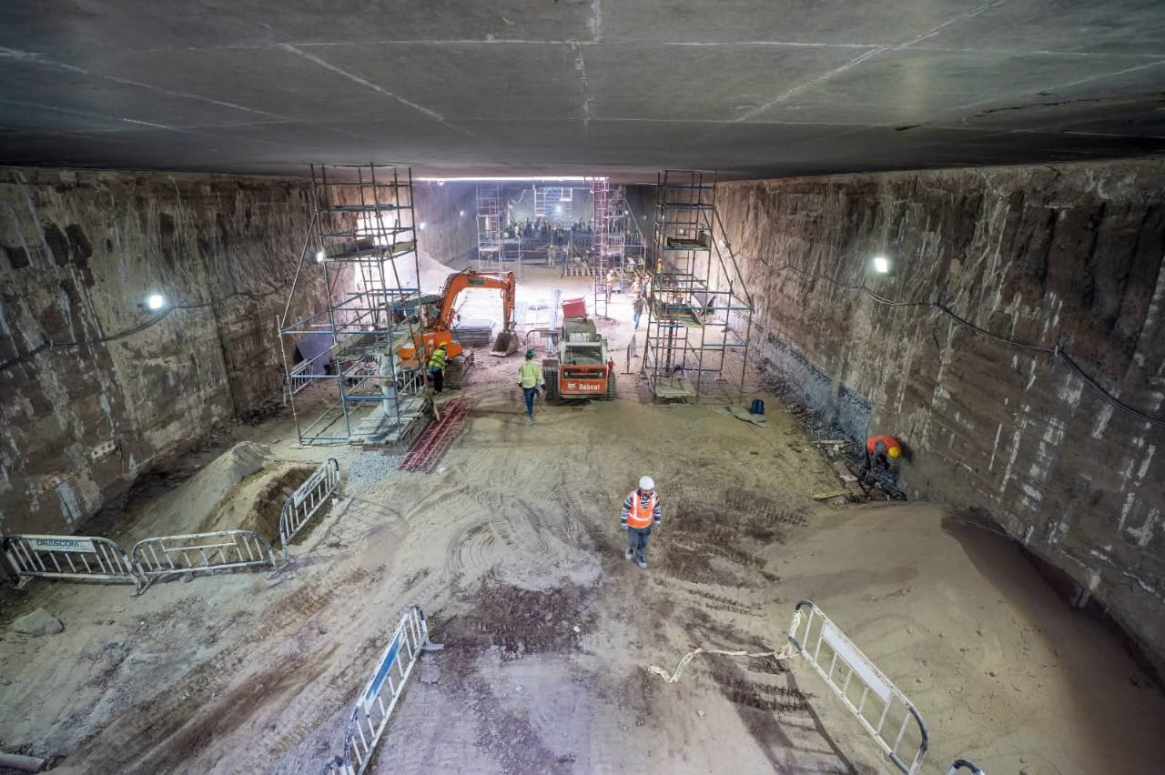 3- يجري حالياً تنفيذ الأعمال الإنشائية بالمرحلة الأولى بالمحطات كذلك أعمال الحفر النفقي و تتقدم معدلات تنفيذ أعمال الحفر النفقي للنفقين بالجزء الأول من المرحلة الاولى (نفق لكل إتجاه) بواسطة 4 ماكينات حفر نفقي (2 ماكينة لكل إتجاه ) حيث وصلت الماكينة الأولى الى محطة المتحف المصرى الكبير والثانية الى محطة الرماية والثالثة فى الطريق الى محطة مدكور والرابعة فى الطريق الى محطة الطالبية