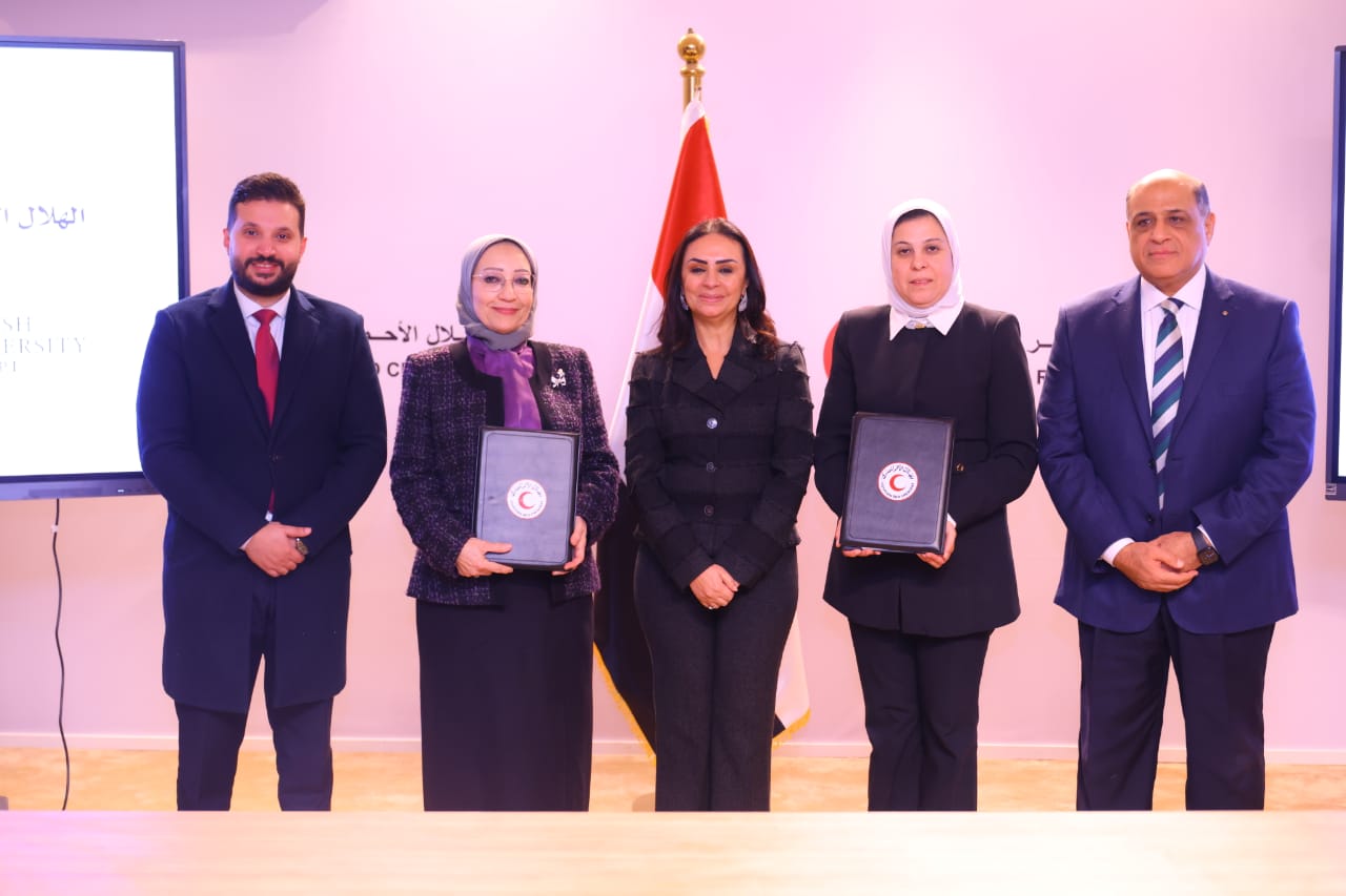 وقام بتوقيع البروتوكولات من جانب الهلال الأحمر المصري الدكتورة آمال إمام المديرة التنفيذية، وعن المجلس القومي للمرأة إيمان خليفة الأمين العام، وعن المجلس القومي للأمومة والطفولة الدكتور وائل عبد الرازق الأمين العام، عن بنك ناصر الاجتماعي دكتور أحمد محمود عطية رئيس قطاع التكافل الاجتماعي، عن الجامعة البريطانية الدكتورة مها عادل عميد كلية التمريض، عن جامعة الأهرام الكندية الدكتورة أمل فوزي نائبة رئيس الجامعة.