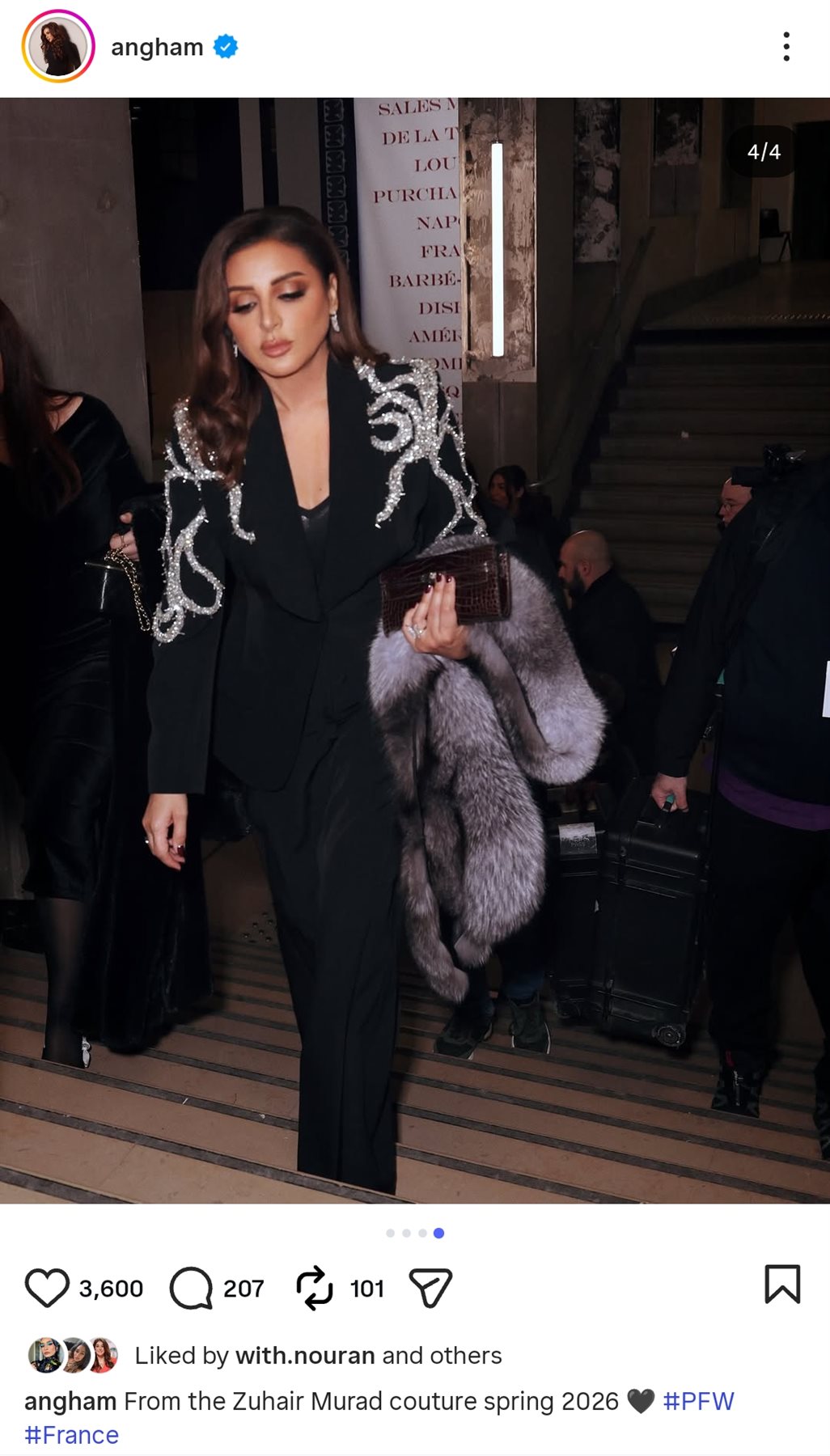 أنغام تتألق بالأسود خلال أسبوع الموضة في باريس 2026|صور