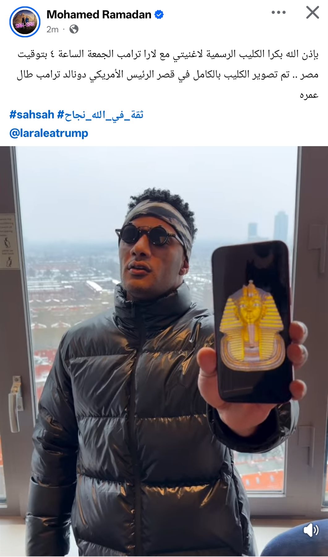 في وقت سابق، كشف الفنان محمد رمضان عن استعداده تصوير فيديو كليب جديد يجمعه بـ"لارا ترامب"، زوجة نجل الرئيس الأمريكي الحالي.