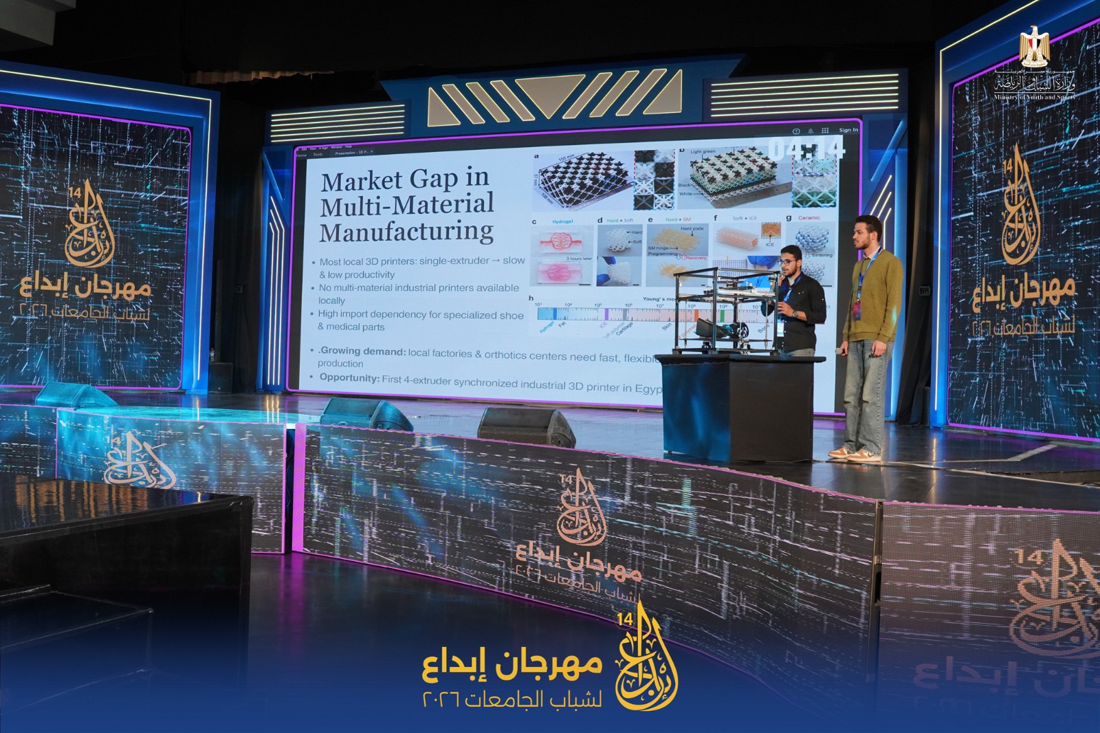 أطلقت اليوم وزارة الشباب والرياضة، من خلال الإدارة المركزية لتنمية الشباب – الإدارة العامة للبرامج الثقافية والفنية، فعاليات اليوم الأول من تحكيم مجال الابتكارات العلمية في تخصص الابتكارات الهندسية، ضمن فعاليات مهرجان "إبداع" الموسم الرابع عشر لطلاب الجامعات المصرية، برعاية فخامة الرئيس عبد الفتاح السيسي، بمشاركة طلاب الجامعات الحكومية والأهلية من مختلف المحافظات.
