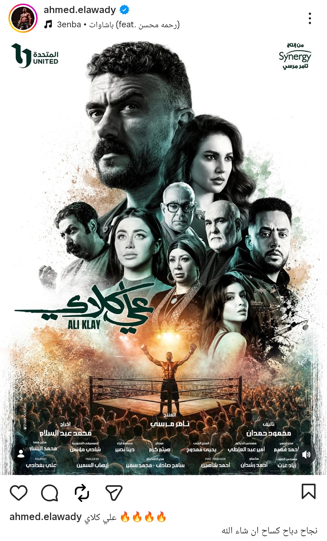 وشارك أحمد العوضي جمهوره بوستر جديد لـ أبطال العمل، وكتب من خلال حسابه الرسمي عبر موقع تبادل الصور والفيديوهات القصيرة إنستجرام، قال: علي كلاي.. نجاح دباح كساح إن شاء الله.