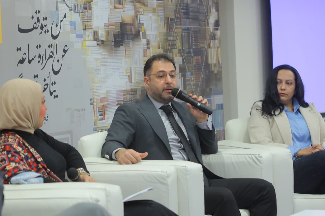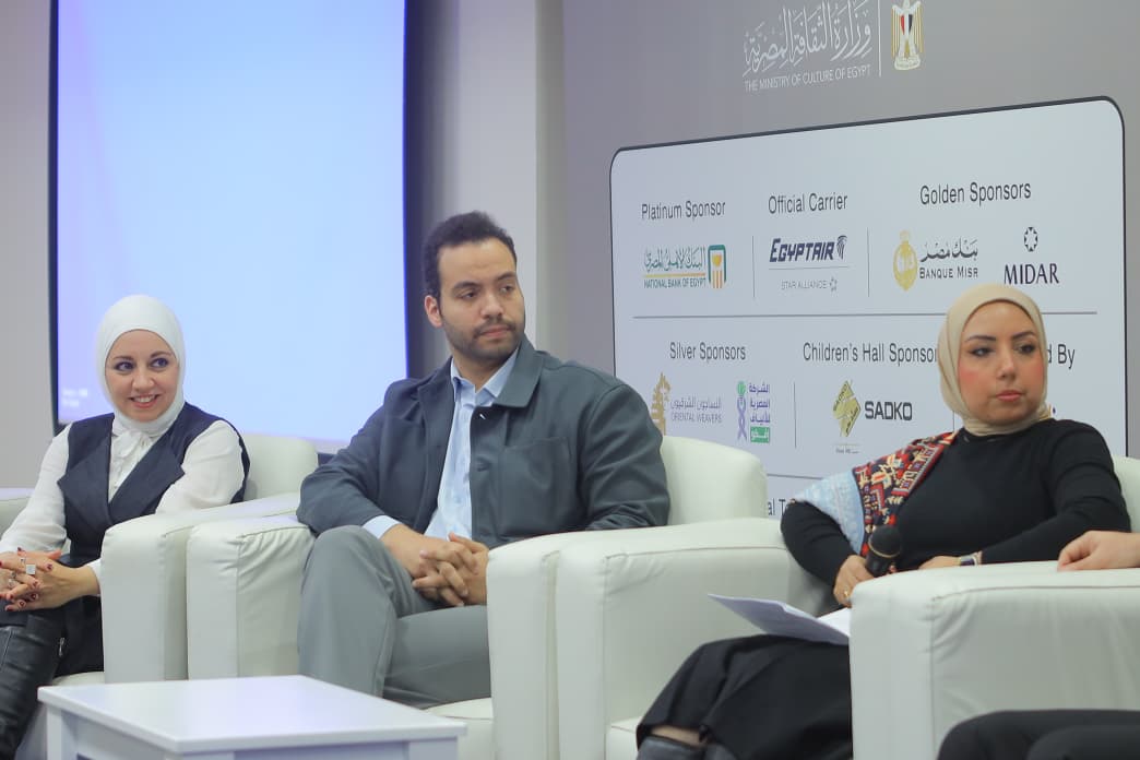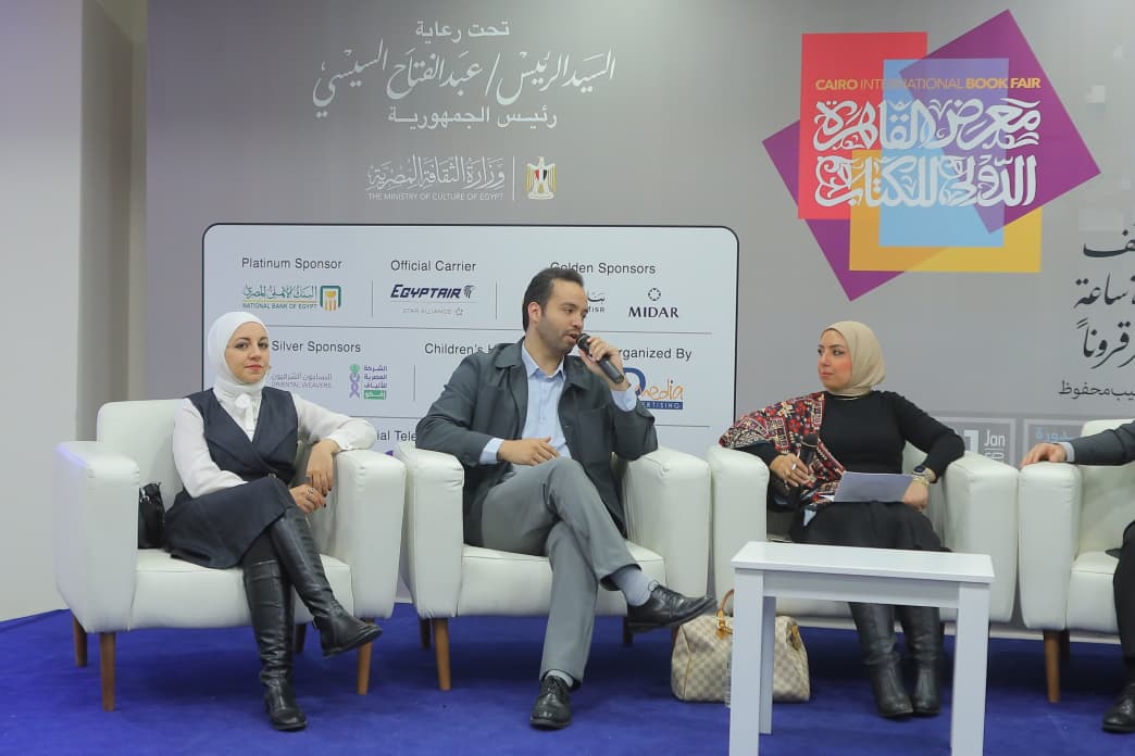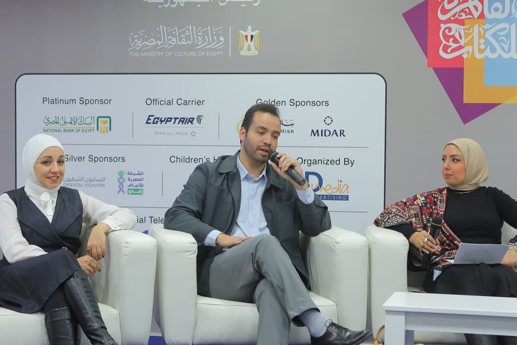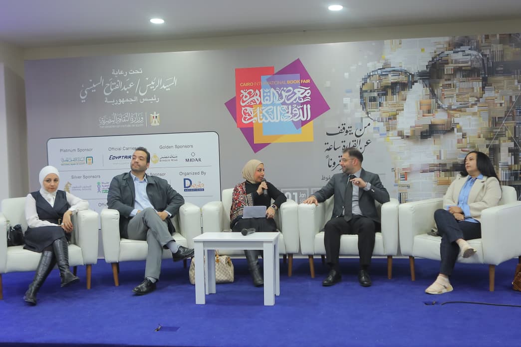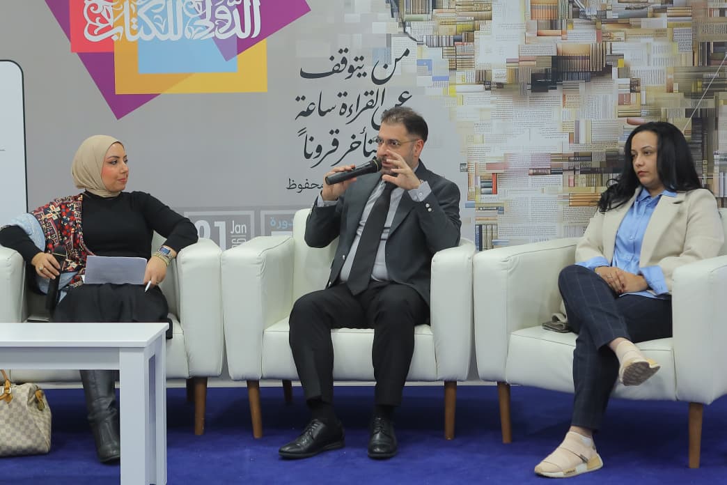 وبعد مقدمة تاريخية بليغة، أدارت الندوة الإعلامية مي حمزة، التي قدّمت ضيوف اللقاء: هبة حسب، كاتبة وروائية وصحفية ومذيعة راديو مصرية، اشتهرت برواياتها «فريدة وسيدي المظلوم» (الحائزة على جائزة ساويرس 2025، والواصلة إلى القائمة الطويلة لجائزة الشيخ زايد) و«المجموعة أ». عملت في العديد من المنصات الثقافية والصحفية، ولها مساهمات إذاعية.