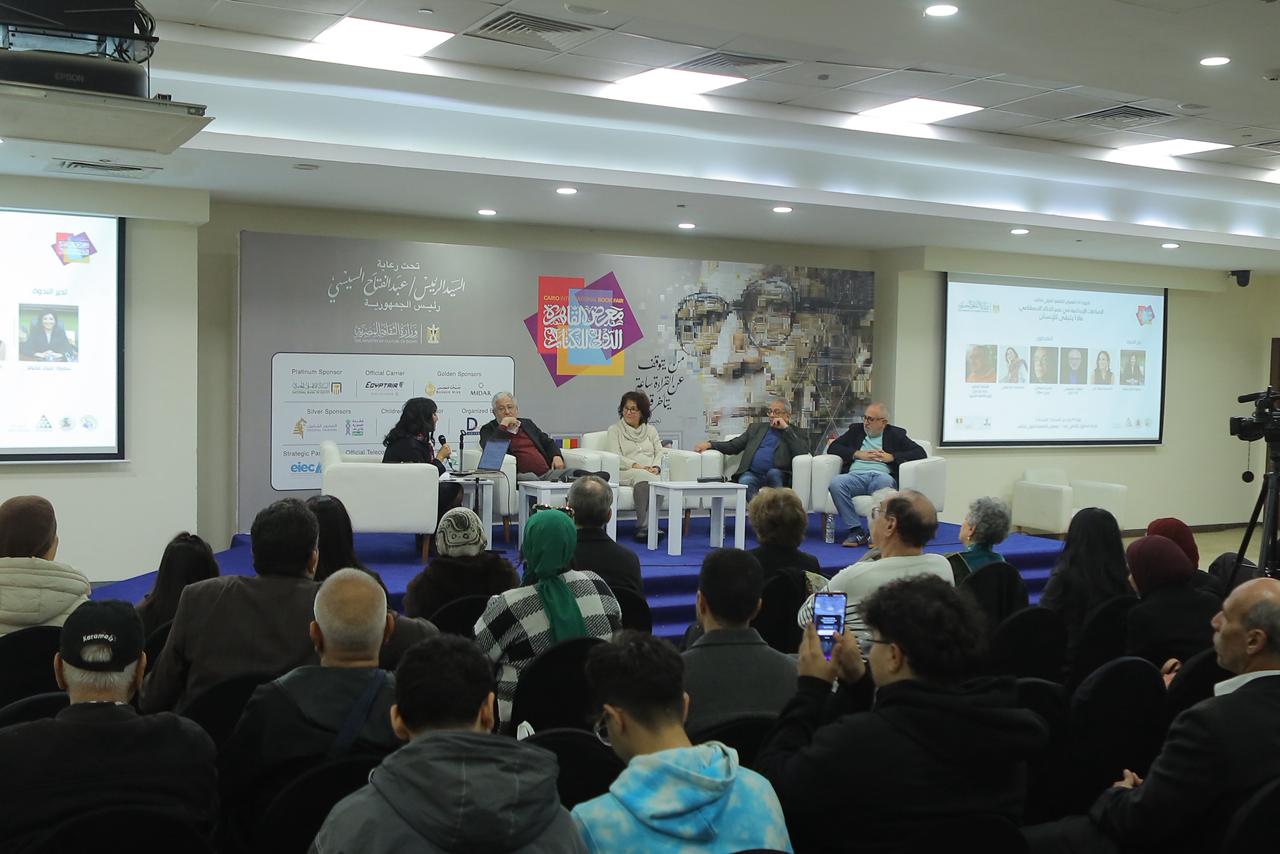 استضاف الصالون الثقافي ببلازا (2)، ضمن فعاليات معرض القاهرة الدولي للكتاب في دورته السابعة والخمسين، ندوة ضمن احتفاليات بعنوان «الصناعات الإبداعية في عصر الذكاء الاصطناعي.. ما يتبقى للإنسان»، وأدارت الندوة السفيرة لمياء مخيمر، بمشاركة كل من الدكتور عماد أبو غازي، وتامر كروان، والمخرج يسري نصر الله، وعزة فهمي، فيما اعتذرت أمينة غالي عن الحضور لظروف صحية.