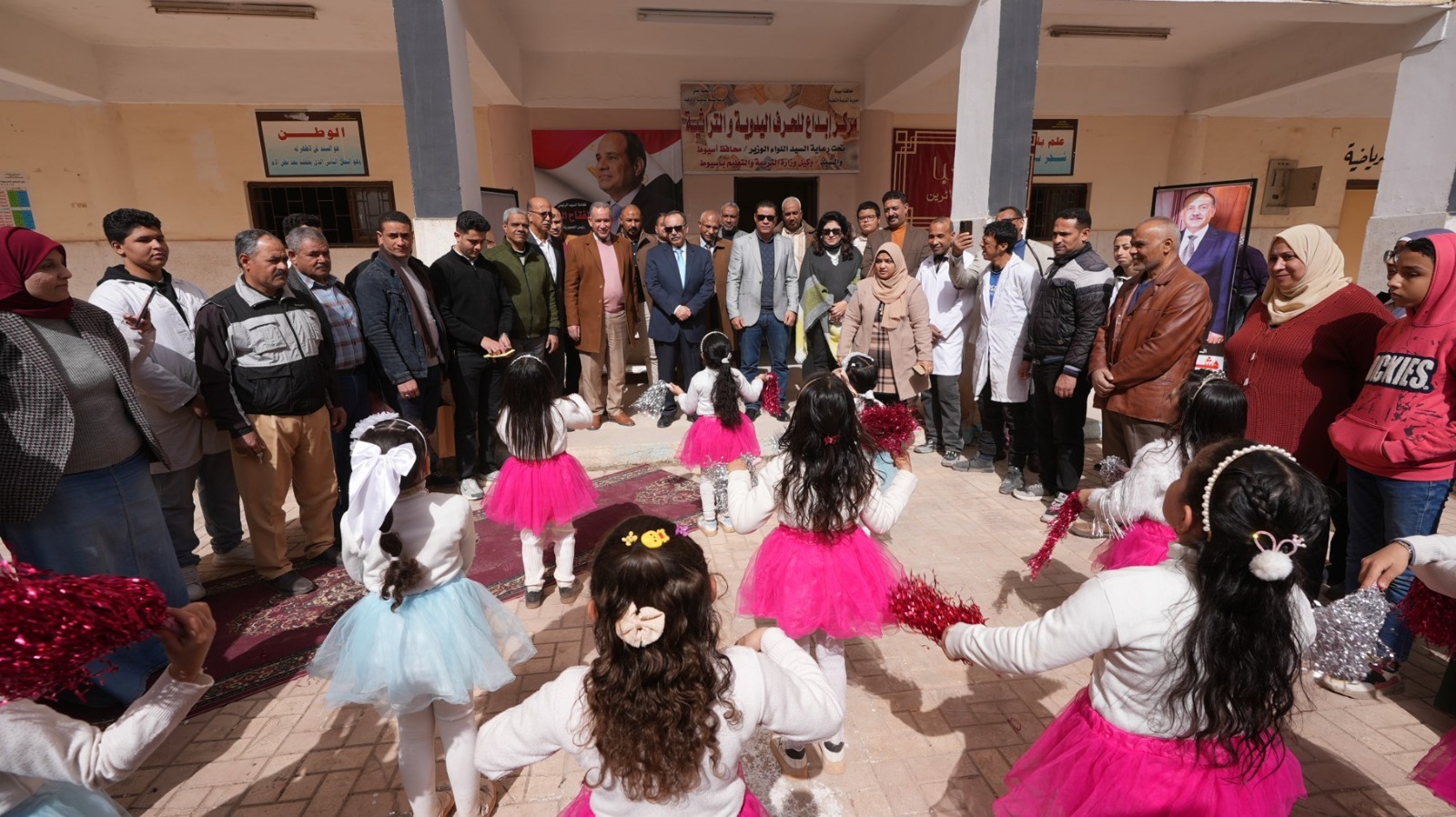 واستهلت فعاليات الافتتاح بعرض فني قدمته فرقة أطفال مدرسة الوحدة العربية الابتدائية، أعقبه تفقد محافظ أسيوط لأقسام مركز "إبداع"، حيث تابع تدريب طلاب المدارس الفنية والتعليم العام على عدد من الحرف اليدوية والتراثية، واطلع على آليات استخدام المعدات والأدوات اللازمة للتدريب والتصنيع، وتوفير الخامات الخاصة بالأشغال اليدوية، إلى جانب الاستفادة من الرواكد الخشبية والمعدنية وإعادة تدويرها وتصنيعها، مشيدًا بجودة المنتجات ومستوى الإبداع والمهارة الذي أظهره الطلاب.