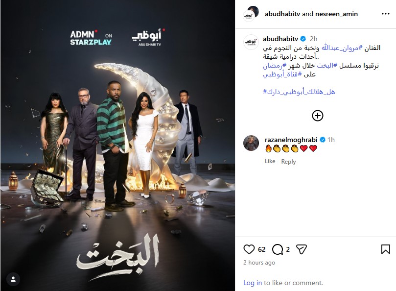 أضافت: «ترقبوا مسلسل البخت خلال شهر رمضان على قناة أبو ظبي».
