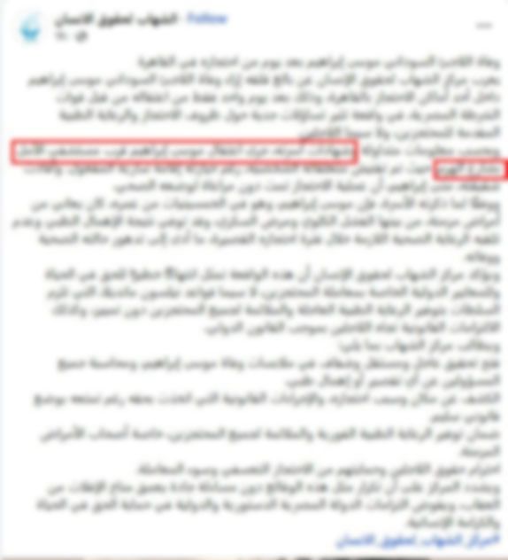 نفى مصدر أمنى جملةً وتفصيلاً صحة مقطع فيديو تم تداوله على عدد من الصفحات التابعة لجماعة الإخوان الإرهابية بمواقع التواصل الإجتماعى تضمن الزعم بقيام الأجهزة الأمنية بإلقاء القبض على (أحد الأشخاص يدعى / موسى إبراهيم - " سودانى الجنسية") بنطاق بمحافظة الجيزة ووفاته بمحبسه.