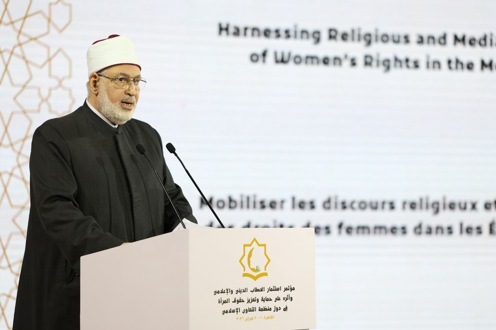 وجاء هذا المؤتمر برعاية السيد الرئيس عبد الفتاح السيسي، رئيس الجمهورية، وحضور معالي الدكتور مصطفى مدبولي، رئيس مجلس الوزراء، وفضيلة الإمام الأكبر أ.د أحمد الطيب، وتنظيم الأزهر الشريف والمجلس القومي للمرأة ومنظمة تنمية المرأة التابعة لمنظمة التعاون الإسلامي، في الفترة من 1 إلى 2 فبراير 2026 بقاعة الأزهر للمؤتمرات، بحضور ممثلين رفيعي المستوى عن الدول الأعضاء الـ57 بمنظمة التعاون الإسلامي، بهدف تسليط الضوء على دور الخطاب الديني والإعلامي الرشيد في تصحيح المفاهيم المغلوطة وتعزيز ثقافة احترام حقوق المرأة.