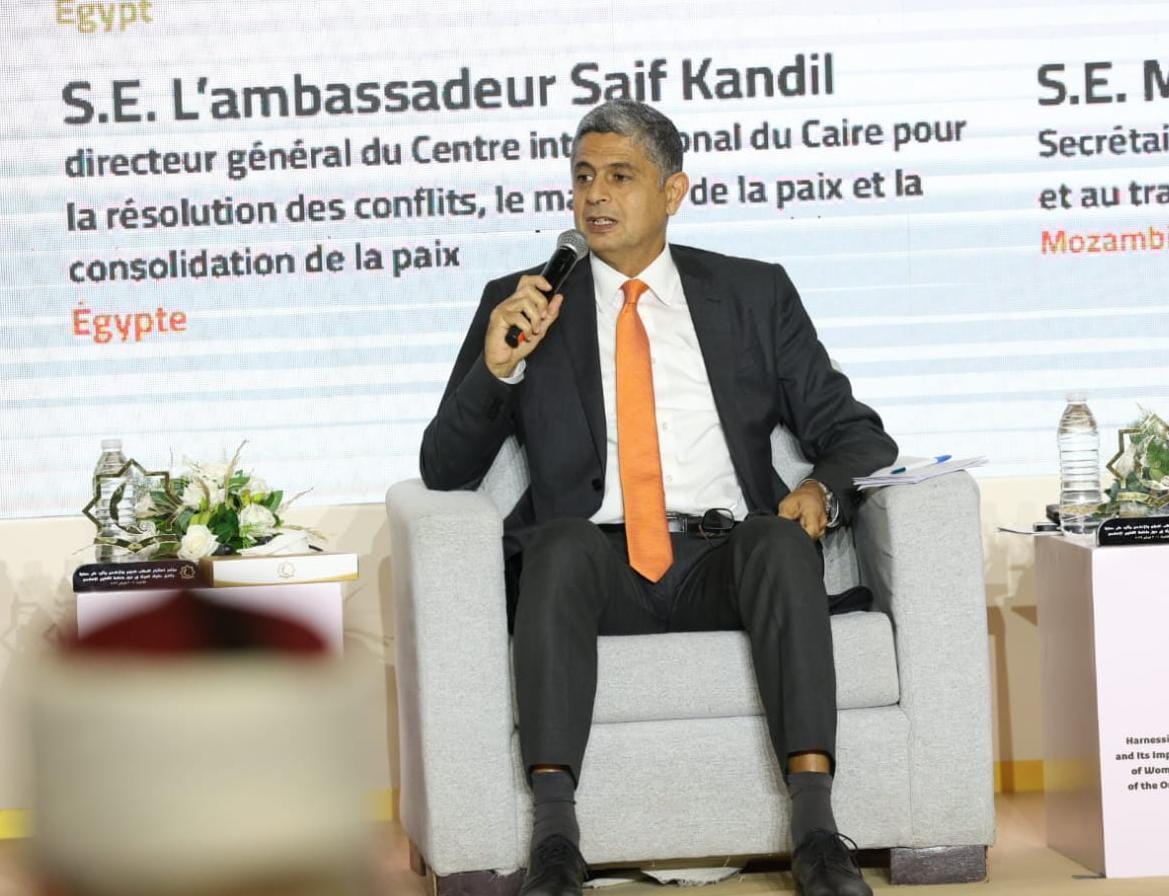 ومن جانبه، أكد السفير سيف قنديل، المدير العام لمركز القاهرة الدولي لتسوية النزاعات وحفظ وبناء السلام، أهمية النظر إلى قرارات الأمم المتحدة المتعلقة بتمكين المرأة في أوقات النزاعات والحروب، موضحًا أن القرار رقم 1325 يُعد إطارًا جامعًا لتعزيز دور المرأة في السلم والأمن. وأشار إلى أن مركز القاهرة يحرص على إدماج قضايا النوع الاجتماعي في جميع أنشطته، سواء من خلال برامج التدريب التي شملت تدريب 250 فتاة في مجالات حفظ وصنع السلام، أو عبر برامجه المتخصصة في مكافحة التطرف، بالتعاون مع مرصد الأزهر الشريف، فضلًا عن جهوده في مواجهة التهديدات العابرة للحدود المرتبطة بالعنف والنزوح واللجوء، بالتنسيق مع مجلس حقوق الإنسان بوزارة الخارجية.