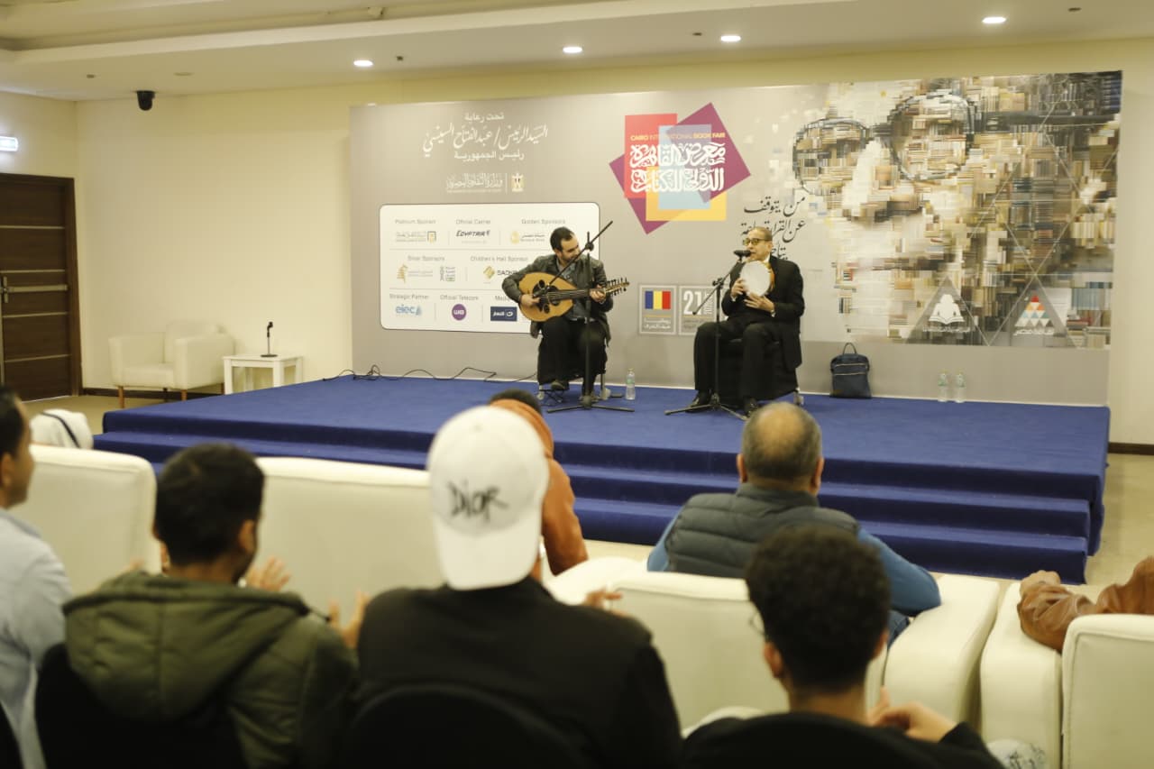 احتضنت القاعة الرئيسية «بلازا 1» ضمن فعاليات الدورة السابعة والخمسين من معرض القاهرة الدولي للكتاب، أمسية موسيقية خاصة احتفت بالتراث والذاكرة السمعية العربية، من خلال عرض موسيقي قدمه عازف العود والمؤلف الموسيقي ماريو سعيد، بمشاركة عازف الإيقاع زين العابدين محمد، وسط حضور لافت من جمهور المعرض والمهتمين بالموسيقى العربية.