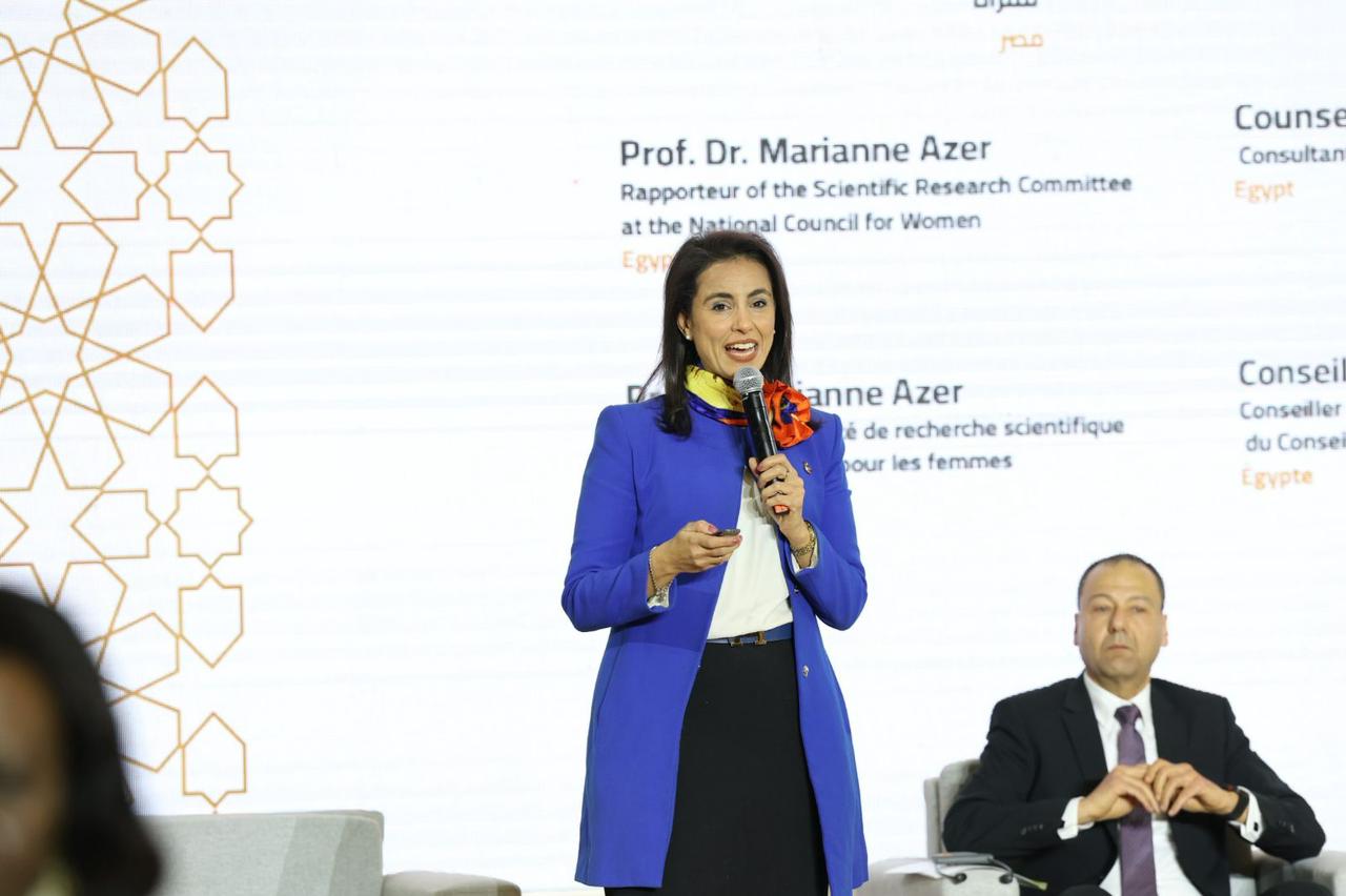 من جانبها أوضحت الأستاذة الدكتورة ماريان عازر، أن ٧٣٪ من النساء حول العالم يتعرضن للتحرش والملاحقة الرقمية عبر الأمن السيبراني، مؤكدة أن الابتزاز الإلكتروني، والتشهير، ونشر الصور غير اللائقة والمعلومات الخاصة، وخطاب الكراهية عبر الإنترنت، تشكل تهديدًا حقيقيًا للمرأة، وأوصت بضرورة وضع آليات متكاملة للوقاية والحماية والتثقيف الرقمي لضمان تمكين النساء من استخدام الفضاء الرقمي بأمان.