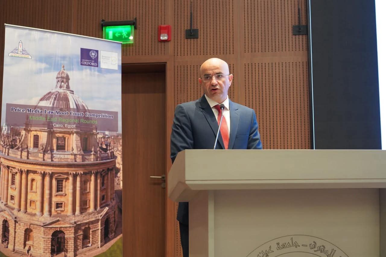 ورحب بالفرق المشاركة من الجامعات المصرية والعربية، مؤكداً أهمية دور الشباب في تطوير الفكر القانوني، فيما شدد ممثلو جامعتي أكسفورد وكولومبيا على أهمية البعد الرقمي للمسابقة ودورها في تنمية مهارات التحليل والمرافعة لدى الطلاب، وتعزيز مفاهيم حرية التعبير والحقوق الرقمية.