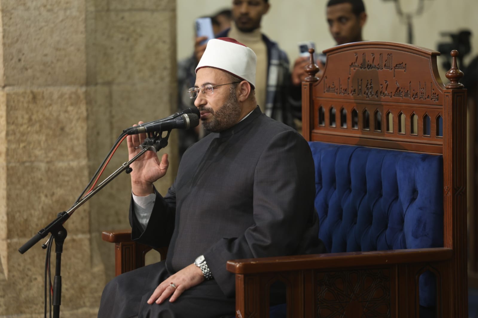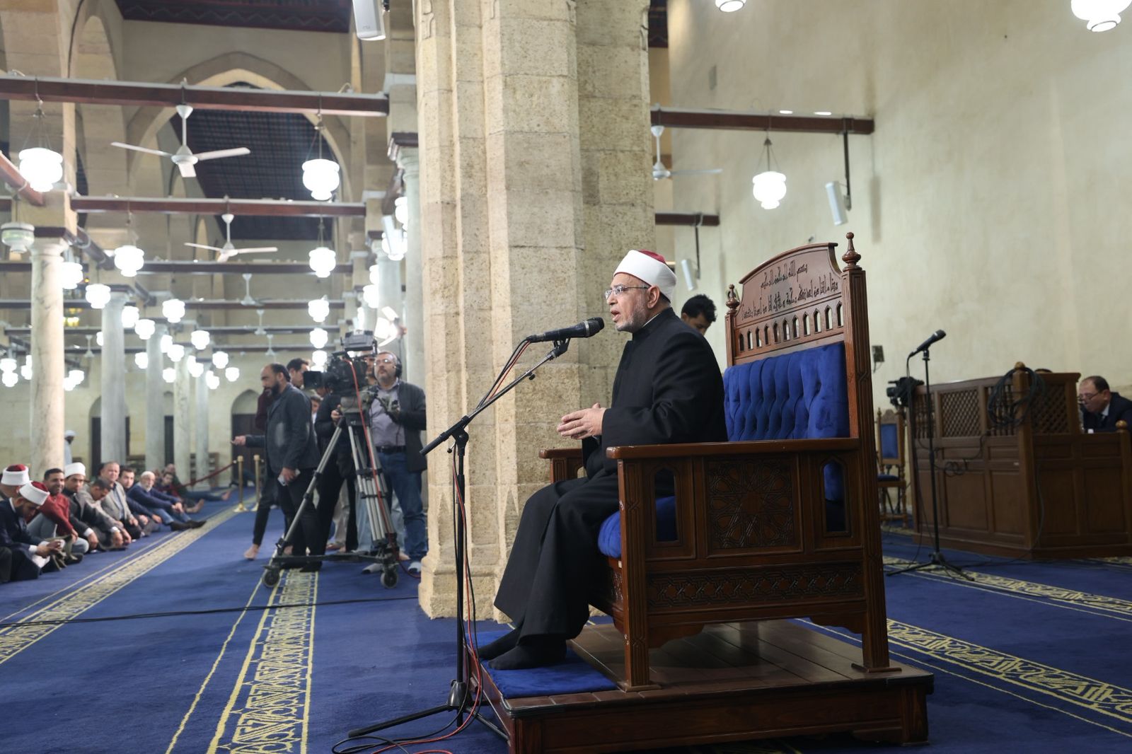 وتابع فضيلته أننا نستلهم في هذه المناسبة العظيمة، نستلهم من رسول الله ﷺ كيف نواجه الصعاب والاعتراضات بصبر وثبات، فنحن اليوم نعيش في عصر يعج بالفتن، وعلينا أن نتمسك بمبادئنا كما تمسك الصحابة رضوان الله عليهم بعد تحويل القبلة، فاستجابوا بأرواحهم وأجسادهم لهذه التوجيهات الإلهية مؤكدًا فضيلته أن هذا الحدث التاريخي لا يقتصر على مجرد ذكرى، بل هو درس يجب أن نعيش به يومًا بعد يوم، وأنه مهما اشتد الجدل حول قضايا ديننا، يجب أن نثبت على هويتنا ونظل متمسكين بديننا وعقيدتنا الصحيحة.