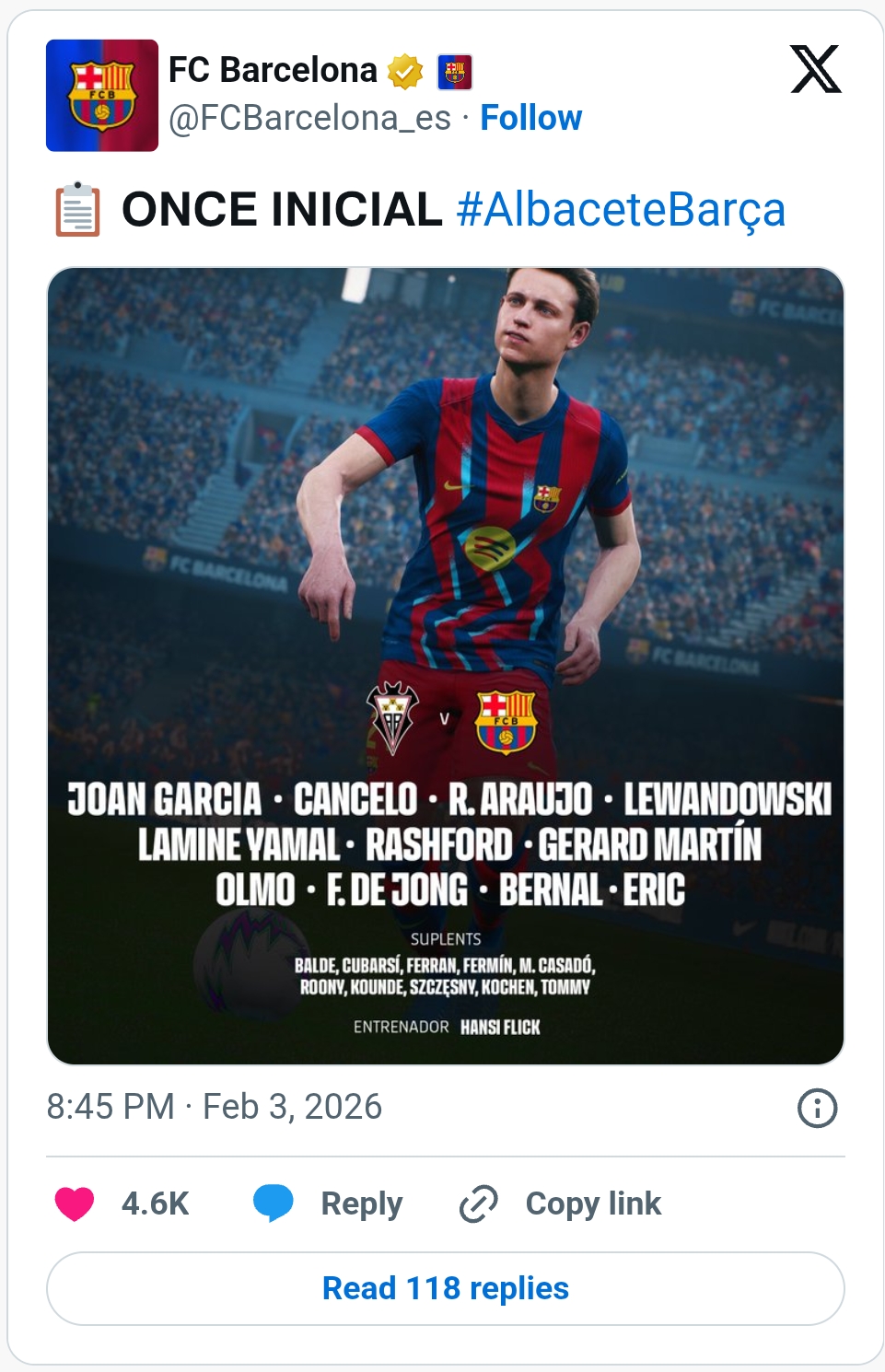 يامال وليفاندوفسكي يقودان هجوم برشلونة أمام ألباسيتي في الكأس