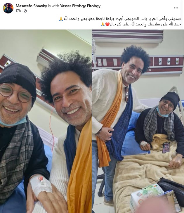 وحرص المطرب مصطفى شوقي على طمئنة جمهور ياسر الطوبجي، وذلك بعد استقرار حالته الصحية، ونشر صورا تجمعهما من داخل المستشفى، وكتب من خلال حسابه الرسمي عبر موقع التواصل الاجتماعي فيسبوك: صديقي وأخي العزيز ياسر الطوبجي أجرى جراحة ناجحة وهو بخير والحمد لله.. حمد لله على سلامتك والحمد لله على كل حال.