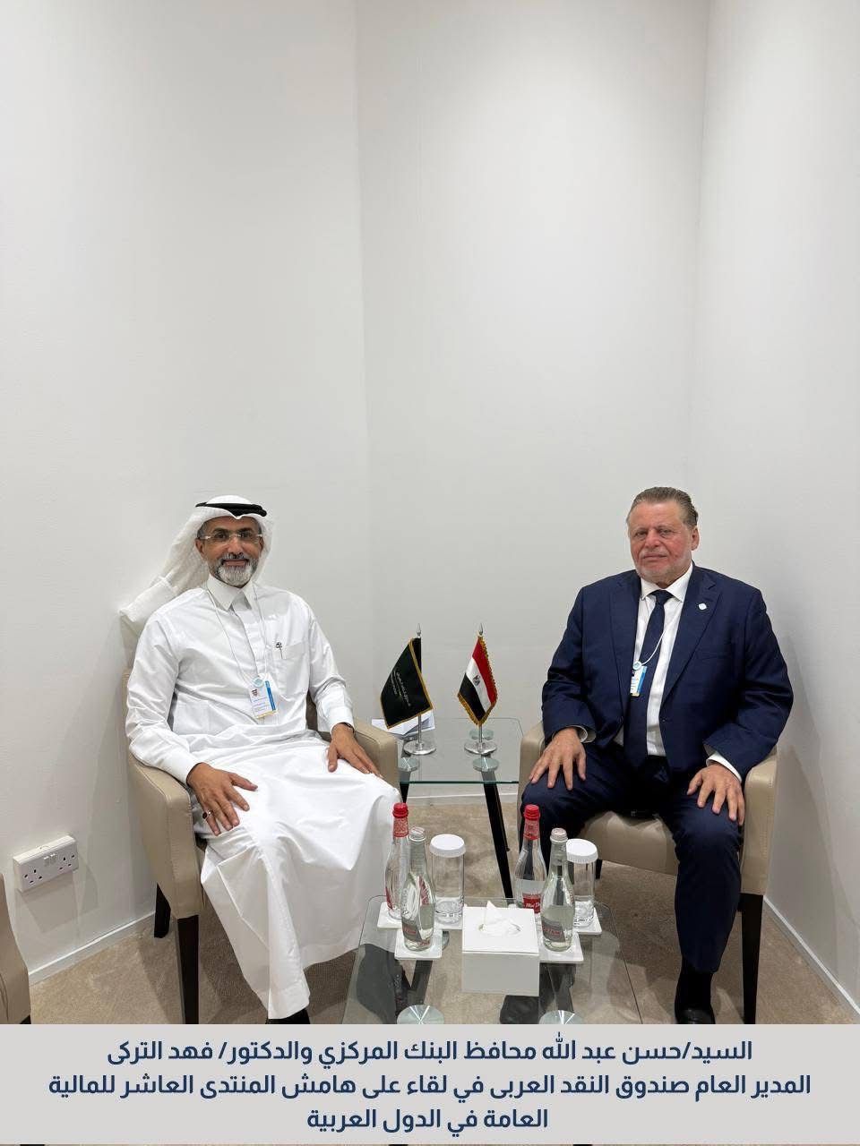 كما عقد السيد المحافظ لقاءً ثنائيًا مع الدكتور فهد التركي المدير العام لصندوق النقد العربي، لبحث أوجه التعاون وتبادل الرؤى حول القضايا الاقتصادية ذات الاهتمام المشترك.