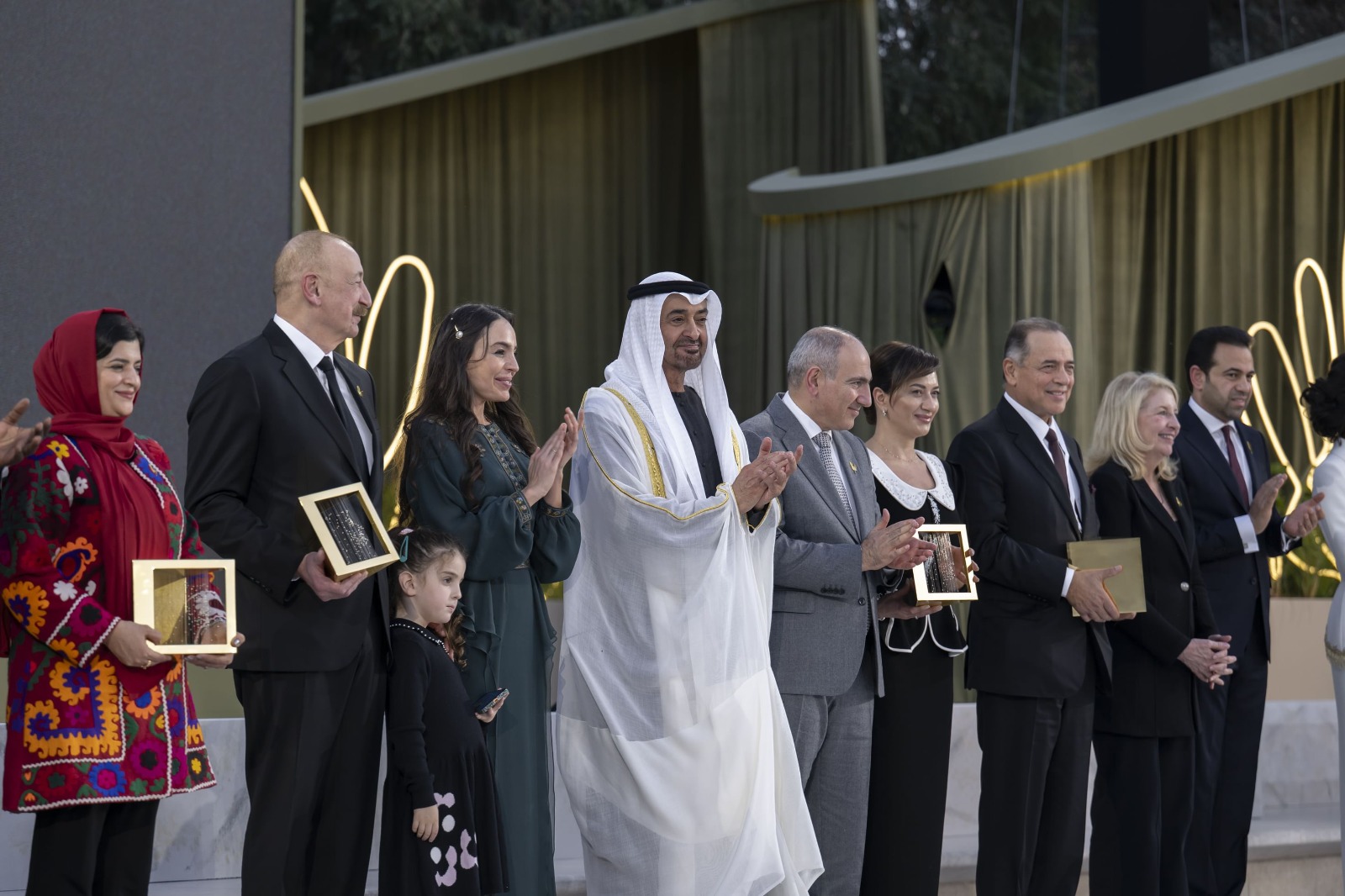 وهنأ صاحب السمو الشيخ محمد بن زايد آل نهيان المكرمين كلاً من فخامة الرئيس إلهام علييف رئيس جمهورية أذربيجان ومعالي نيكول باشينيان رئيس وزراء جمهورية أرمينيا تكريماً لـ "اتفاق السلام" التاريخي بين بلديهما بجانب زرقاء يفتالي تقديراً لدورها في تعزيز حقوق الفتيات الأفغانيات في التعليم، ومؤسسة التعاون الفلسطينية لجهودها الإنسانية في دعم الشعب الفلسطيني مؤكداً سموه أن إنجازاتهم تجسد القيم الإنسانية التي تبني جسور التعاون وتصون كرامة الإنسان وتصنع مستقبلاً أكثر تقدماً وازدهاراً لكل الشعوب.