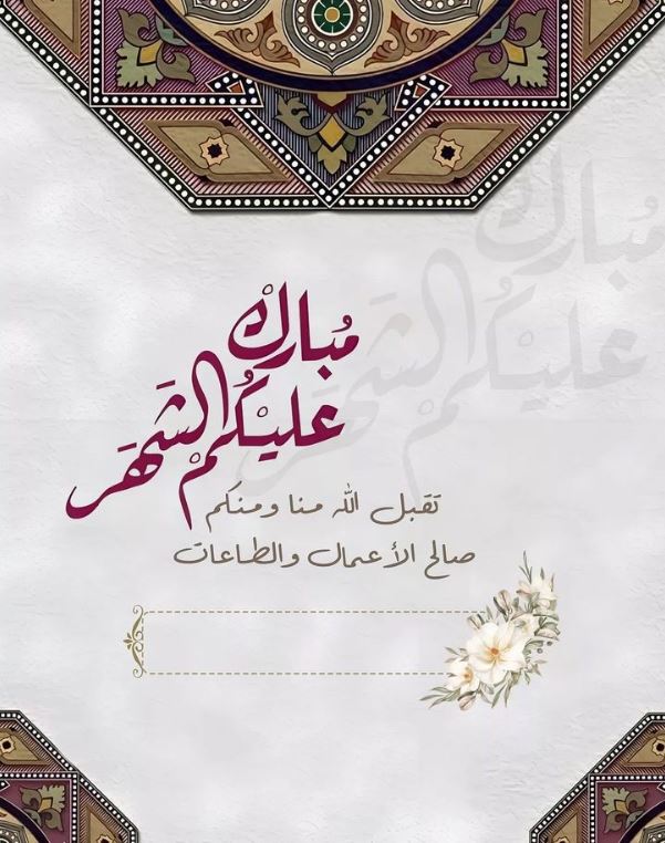 "مبارك عليك شهر رمضان، جعله الله شهر خير وسعادة لك ولعائلتك."