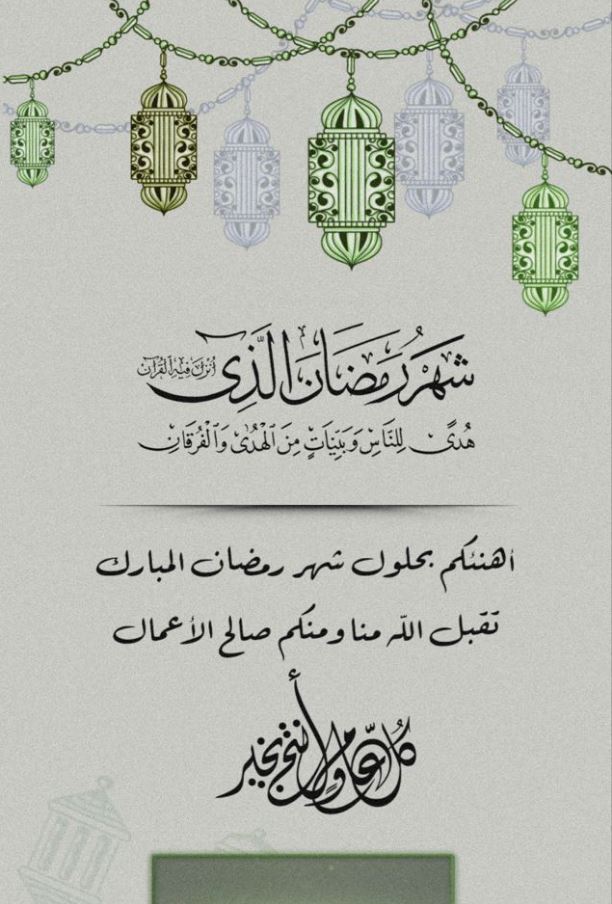بقدوم شهر الخير، نتمنّى لكم كلّ الصحة والخير، ونرسل تهانينا لكم مع كل نسمة وطير، وكل عام وأنتم بسعادة وأمان وخير.