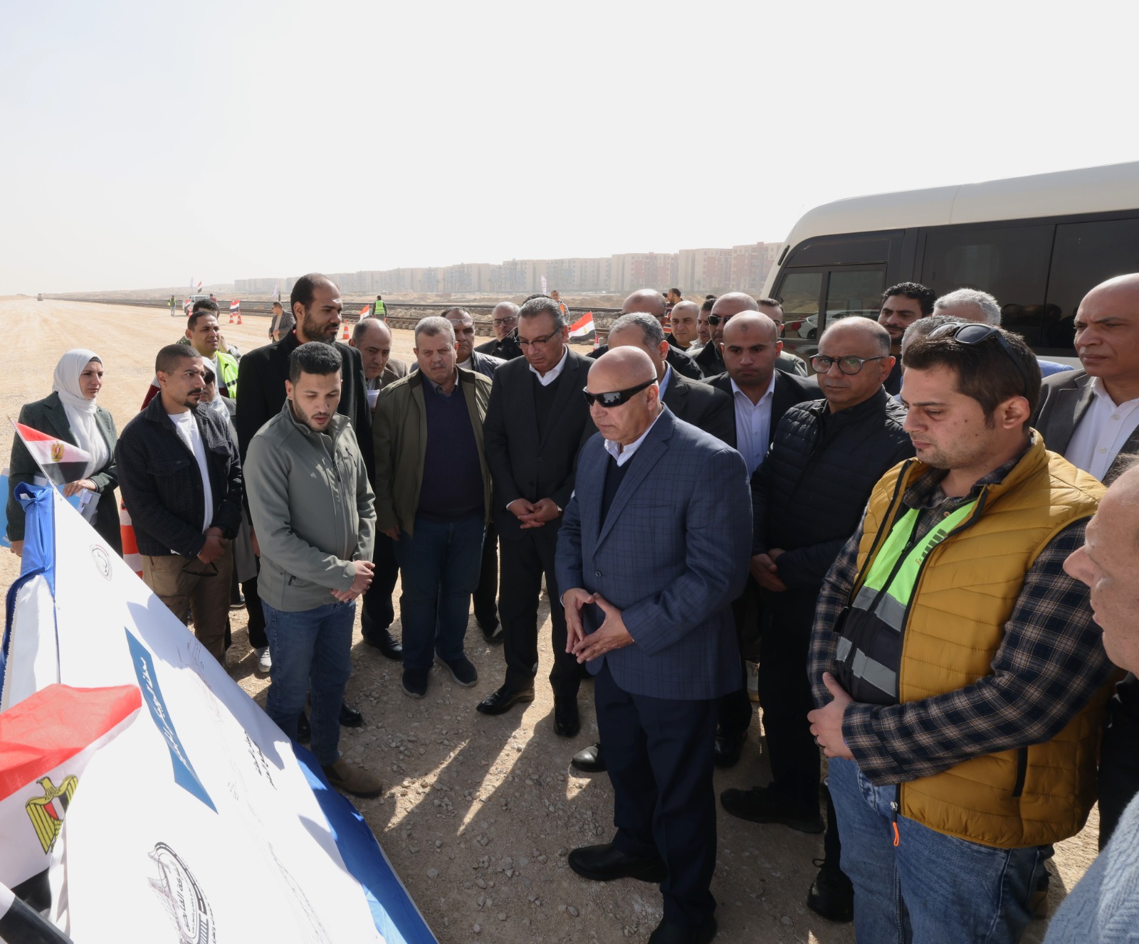 رافقه كل اللواء ماجد عبد الحميد نائب الوزير للنقل البري والمهندس وجدي رضوان نائب الوزير للجر الكهربائي والسكك الحديدية والدكتور عبدالرحمن الباز مساعد الوزير لمتابعة المشروعات واللواء طارق عبد الجواد رئيس هيئة الطرق والكباري والمهندس محمد عامر رئيس هيئة السكك الحديدية، والمهندس على عياد الرئيس التنفيذي للشركة القابضة لمشروعات الطرق والكباري والاعمال البحرية.