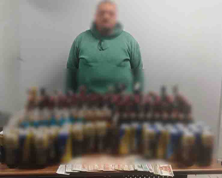 عقب تقنين الإجراءات تم إستهدافه وأمكن ضبطه ، وبحوزته «كمية من زجاجات المشروبات الكحولية "مغشوشة ومجهولة المصدر"»، وبمواجهته أقر بنشاطه الإجرامى على النحو المُشار إليه.