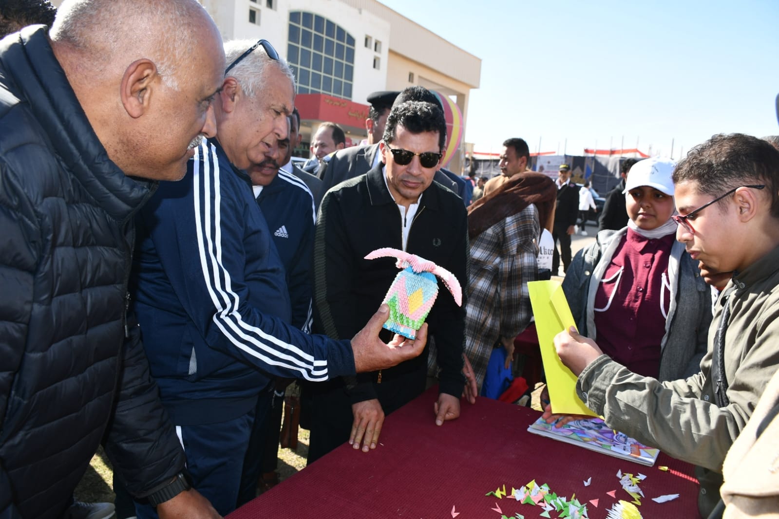 شهد الدكتور أشرف صبحي وزير الشباب والرياضة، واللواء دكتور محمد الزملوط محافظ الوادي الجديد، واللواء خالد شعيب محافظ مطروح، فعاليات معرض المنتجات الحرفية والتراثية للشباب، وملتقى توظيف مصر، الذي أُقيم بالتعاون مع شركة كير مصر ومايكروسوفت، ضمن الجولة التفقدية بالصالة المغطاة.