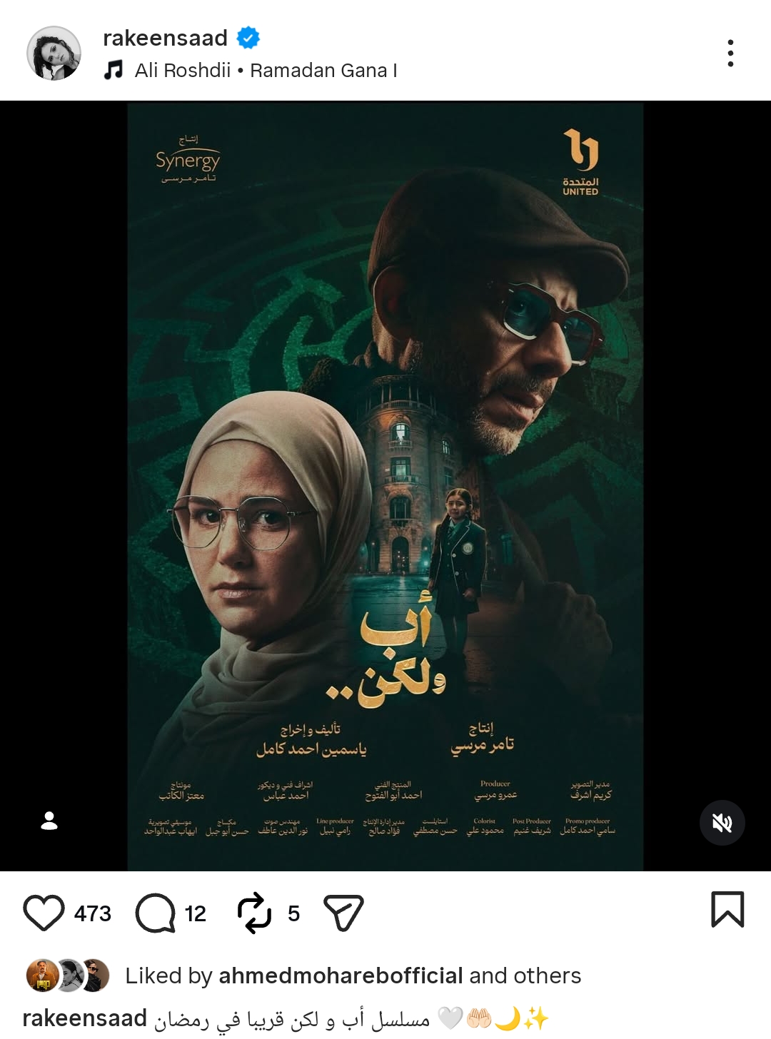 روجت الفنانة ركين سعد لـ مسلسل أب ولكن، الذي تشارك في بطولته بجانب الفنان محمد فراج، ويخوضا به السباق الرمضاني المقبل 2026.