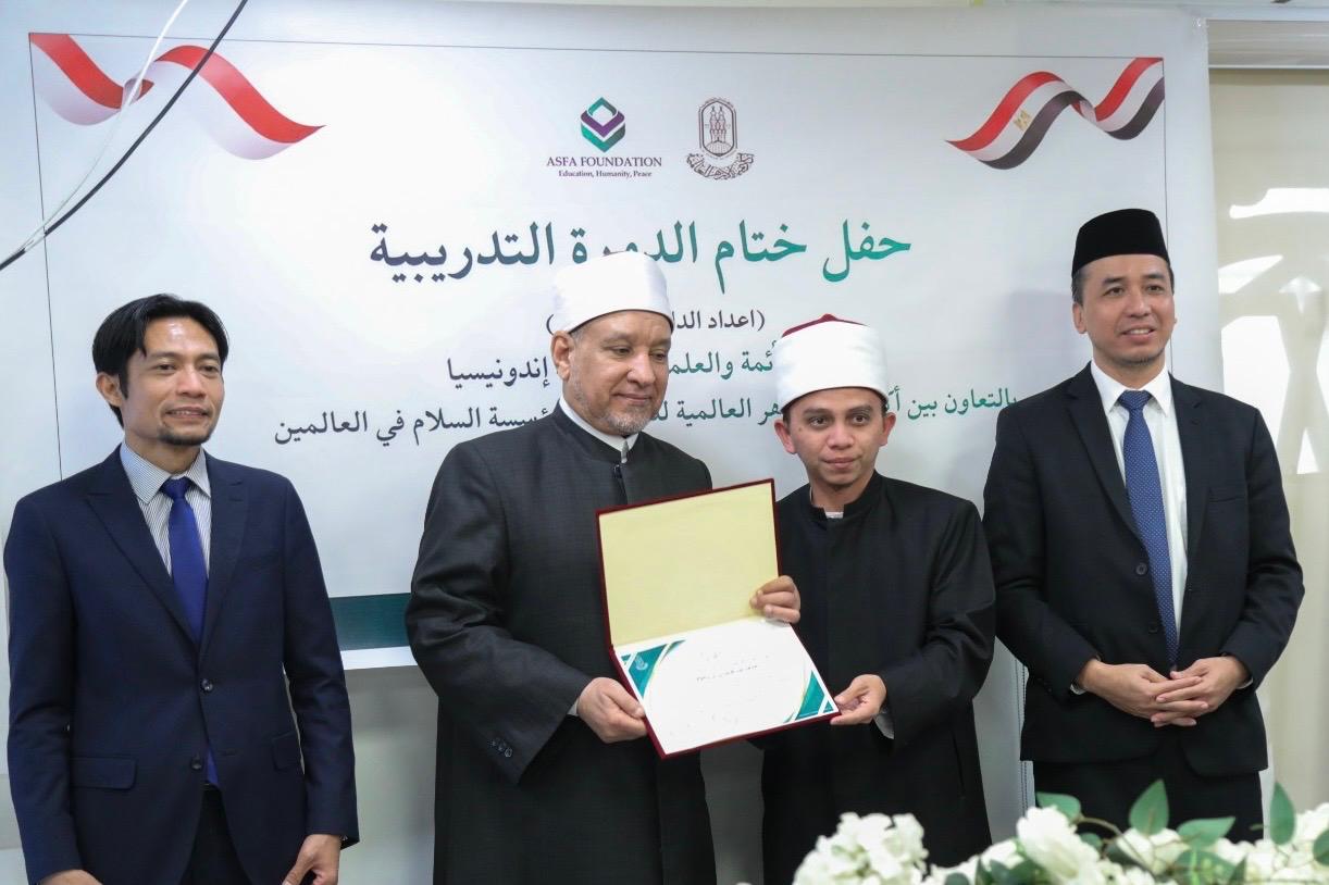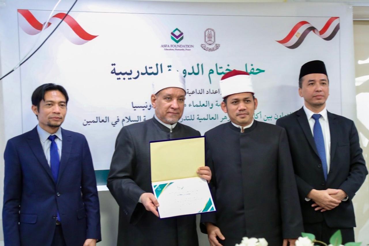 واختتم الحفل بتوزيع شهادات التخرج على جميع المشاركين، مع التأكيد على أهمية استمرار التعاون العلمي والتدريبي بين الأزهر الشريف والمؤسسات الإندونيسية، بما يسهم في خدمة قضايا الدعوة، وتعزيز القيم الوسطية والاعتدال، ونشر السلام والفهم الصحيح للإسلام في مختلف المجتمعات.