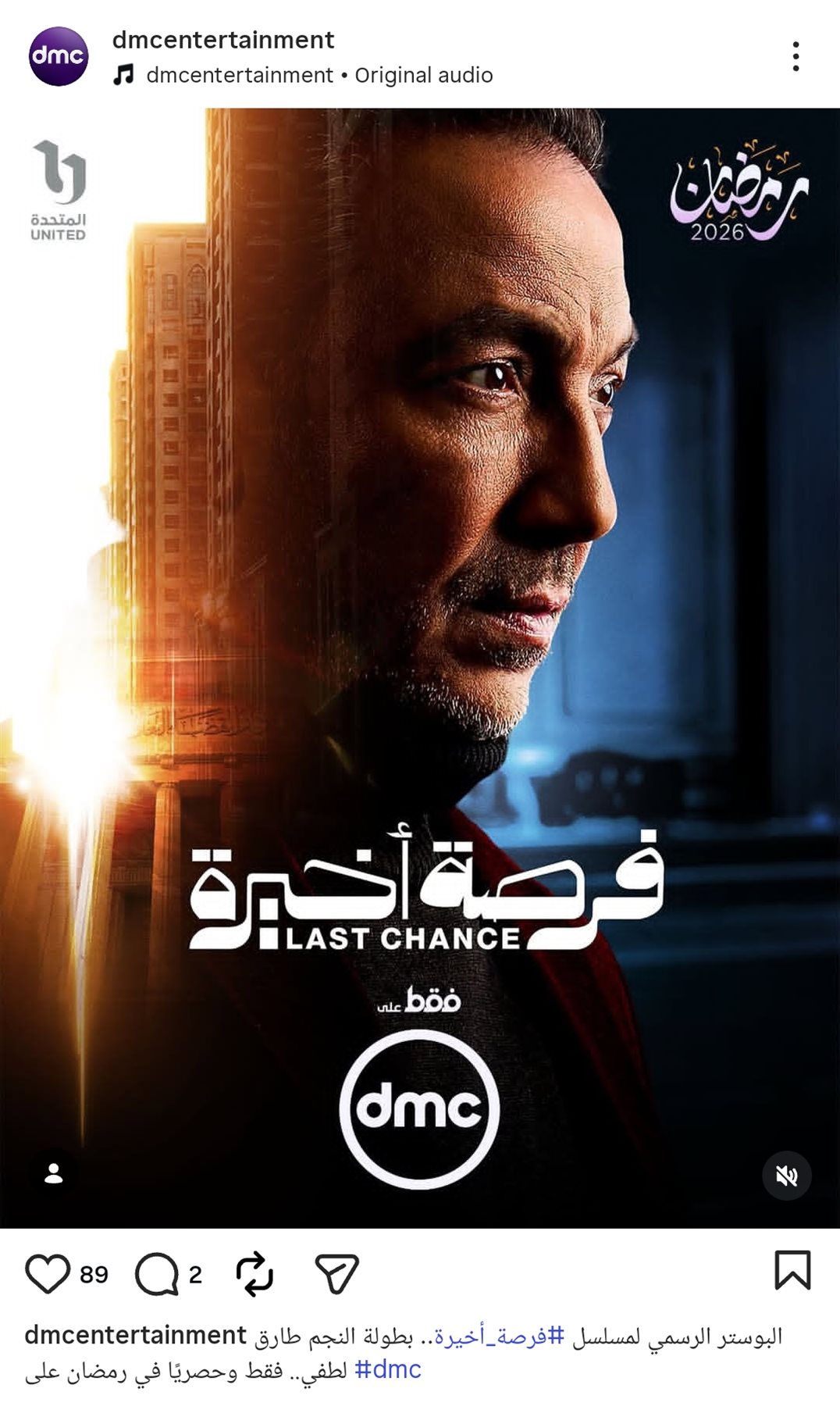 كشفت قناة دي إم سي عن البوستر الرسمي لـ الفنان طارق لطفي مسلسل فرصة أخيرة، والذي من المقرر عرضه في موسم دراما رمضان 2026.