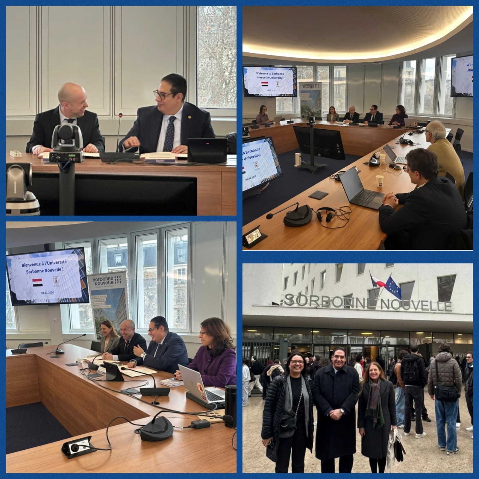 وتضمنت اللقاءات أيضًا اجتماعًا مع البروفيسور دانيال موشار-زاي (Daniel Mouchard-Zay) رئيس جامعة سوربون نوفيل (Sorbonne Nouvelle)، وذلك بمقر الجامعة التي تُعد واحدة من أبرز الجامعات الفرنسية المتخصصة في مجالات اللغات والآداب والعلوم الإنسانية والفنون وعلوم الاتصال والإعلام، وتؤدي دورًا مهمًا في إعداد المتخصصين في الصناعات الثقافية والإبداعية.