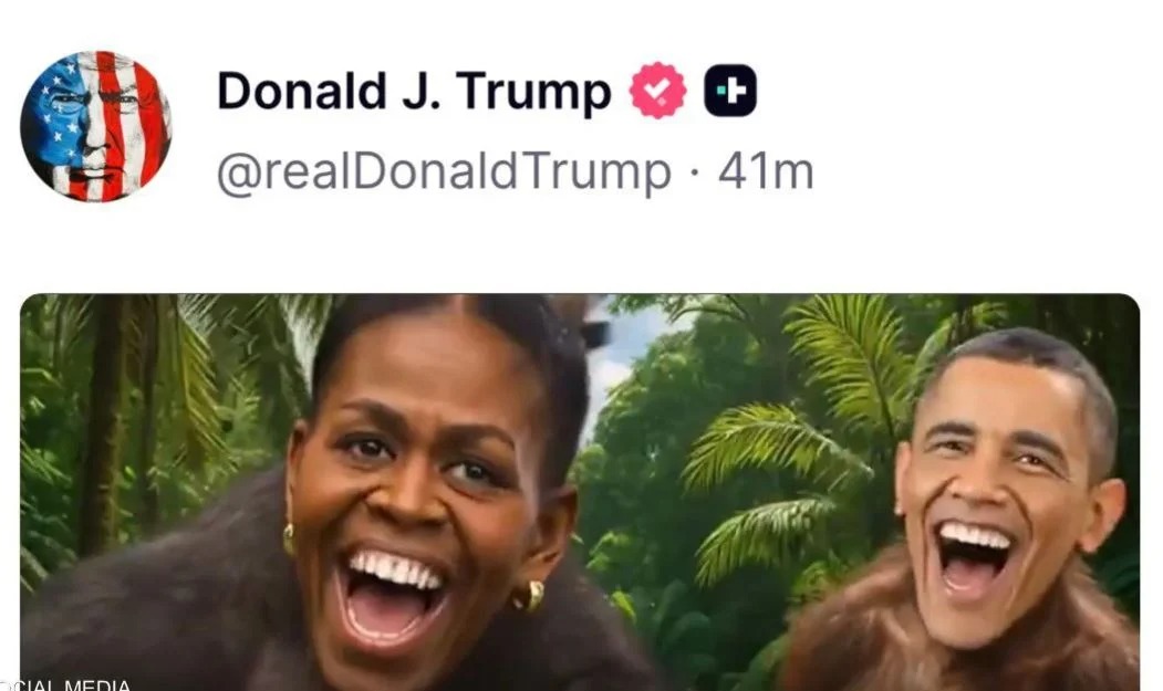 والخميس نشر ترامب مقطع فيديو مدته نحو دقيقة على منصة "تروث سوشال"، يروج لنظرية مؤامرة انتخابية، وفي ختامه يظهر وجها أوباما وزوجته ميشيل على قردين لمدة ثانية تقريبا.