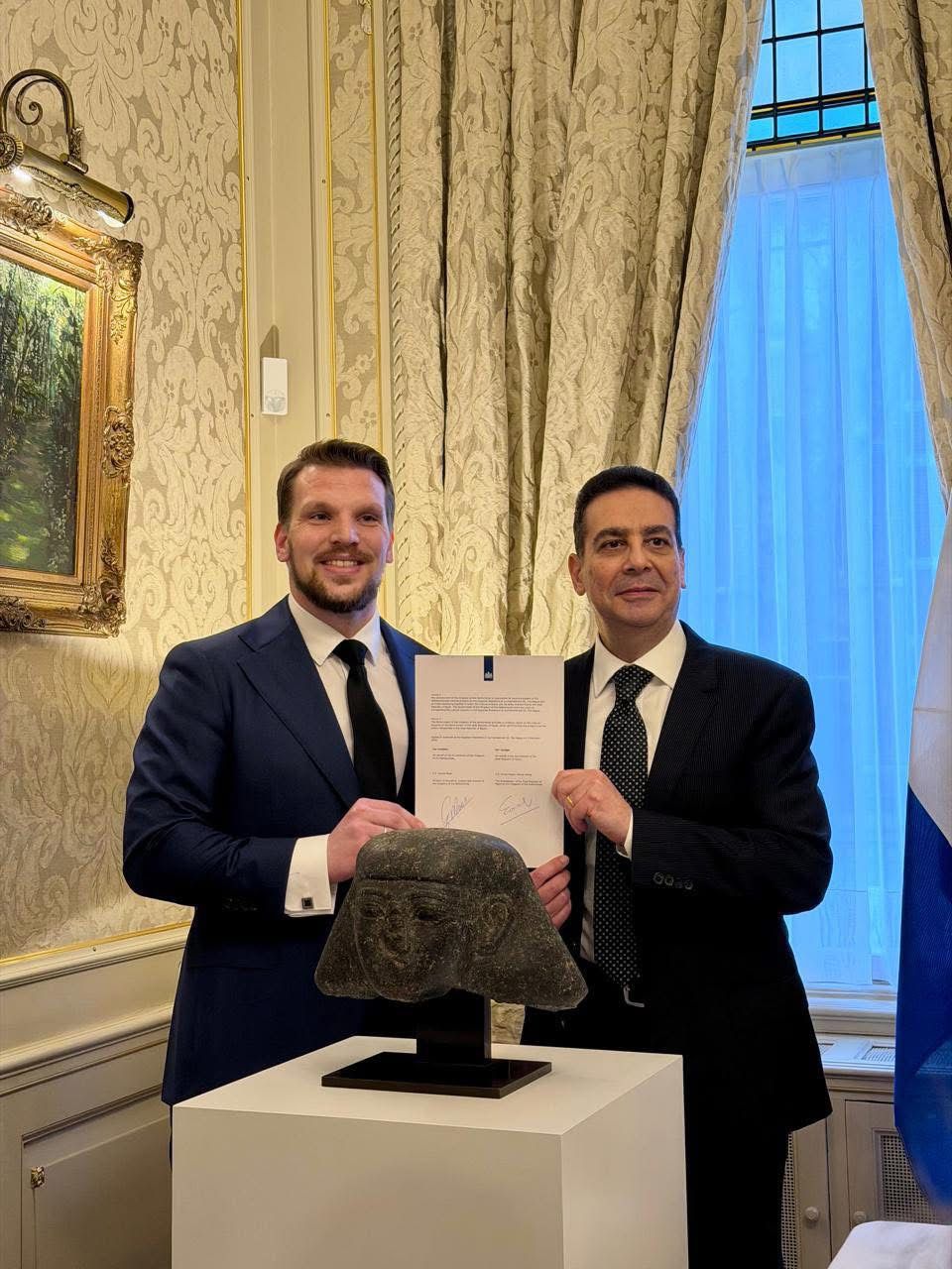 وتم تنظيم مراسم تسليم رسمية تعكس مستوى التعاون القائم بين مصر وهولندا في مجال حماية التراث الثقافي والالتزام بالمواثيق والاتفاقيات الدولية المنظمة لذلك، بما يمثل نموذجاً يحتذى به للإعادة الطوعية للأثار المصرية المهربة.