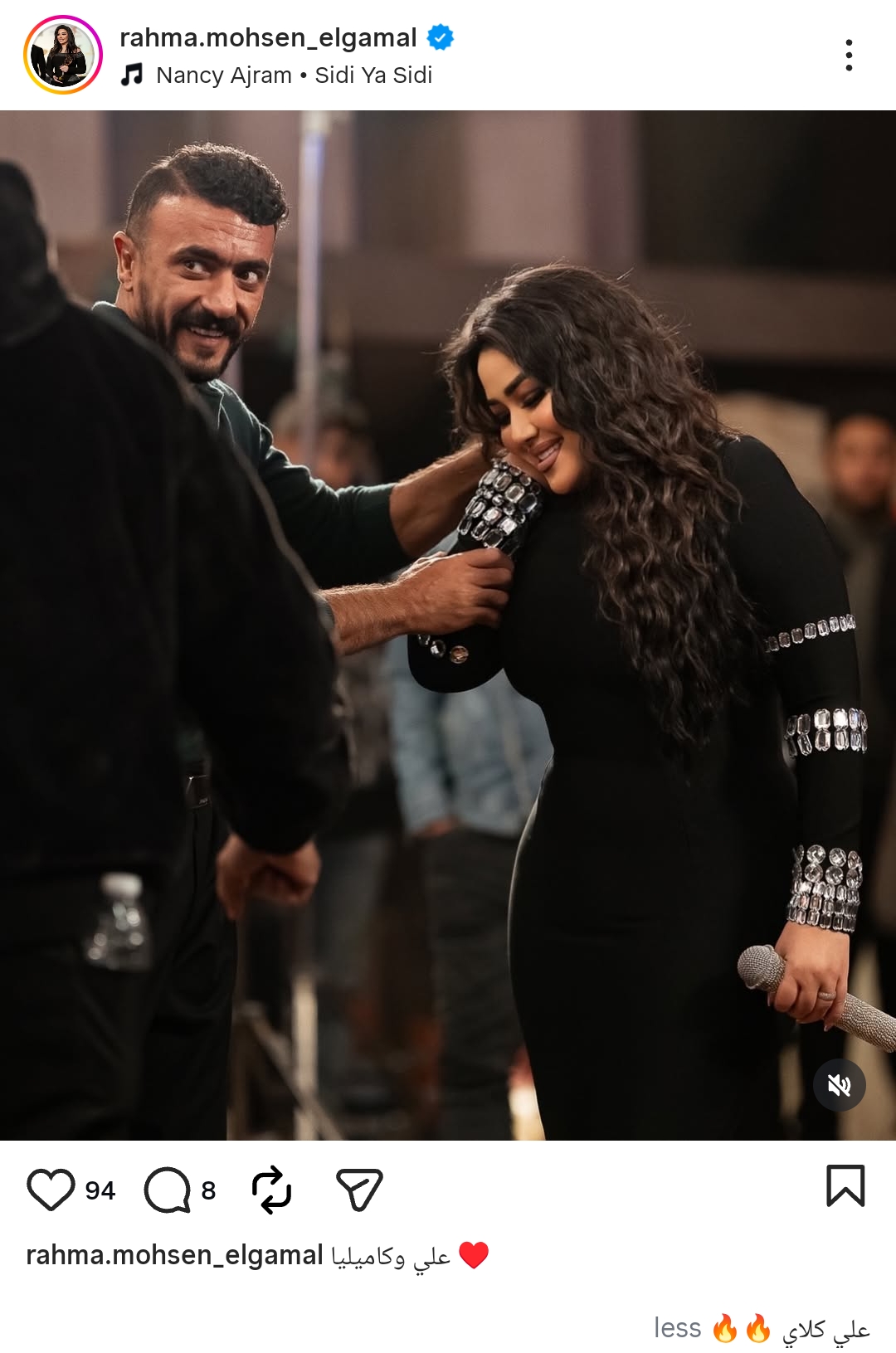 ونشرت رحمة محسن الكواليس، من خلال حسابها الرسمي عبر موقع تبادل الصور والفيديوهات القصيرة إنستجرام، وعلقت: «علي وكاميليا.. علي كلاي».