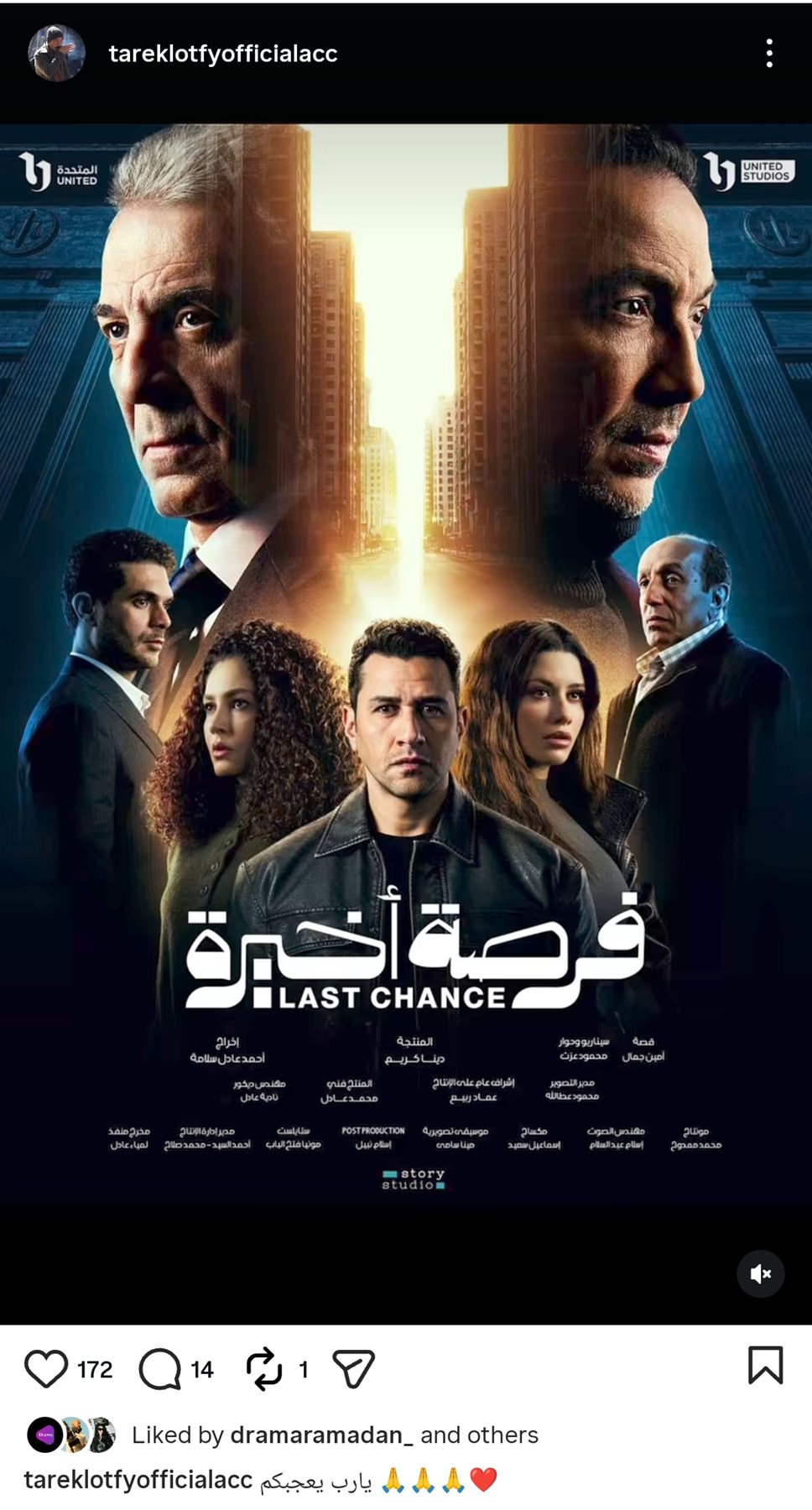 وشارك طارق لطفي جمهوره البوستر الرسمي للعمل من خلال حسابه الرسمي عبر موقع تبادل الصور والفيديوهات القصيرة إنستجرام، وعلق: يارب يعجبكم.