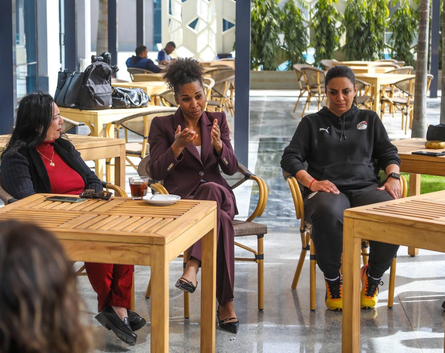 وأدارت لورا جورج حوارًا للتعرف على لاعبات منتخب مصر للكرة النسائية، وطموحاتهن في عالم كرة القدم، وأظهرت سعادتها بالتنوع الكبير الذي لمسته، على صعيد أعمار اللاعبات وثقافتهن، وكذلك عدد الأندية التي تمثلها لاعبات المنتخب.