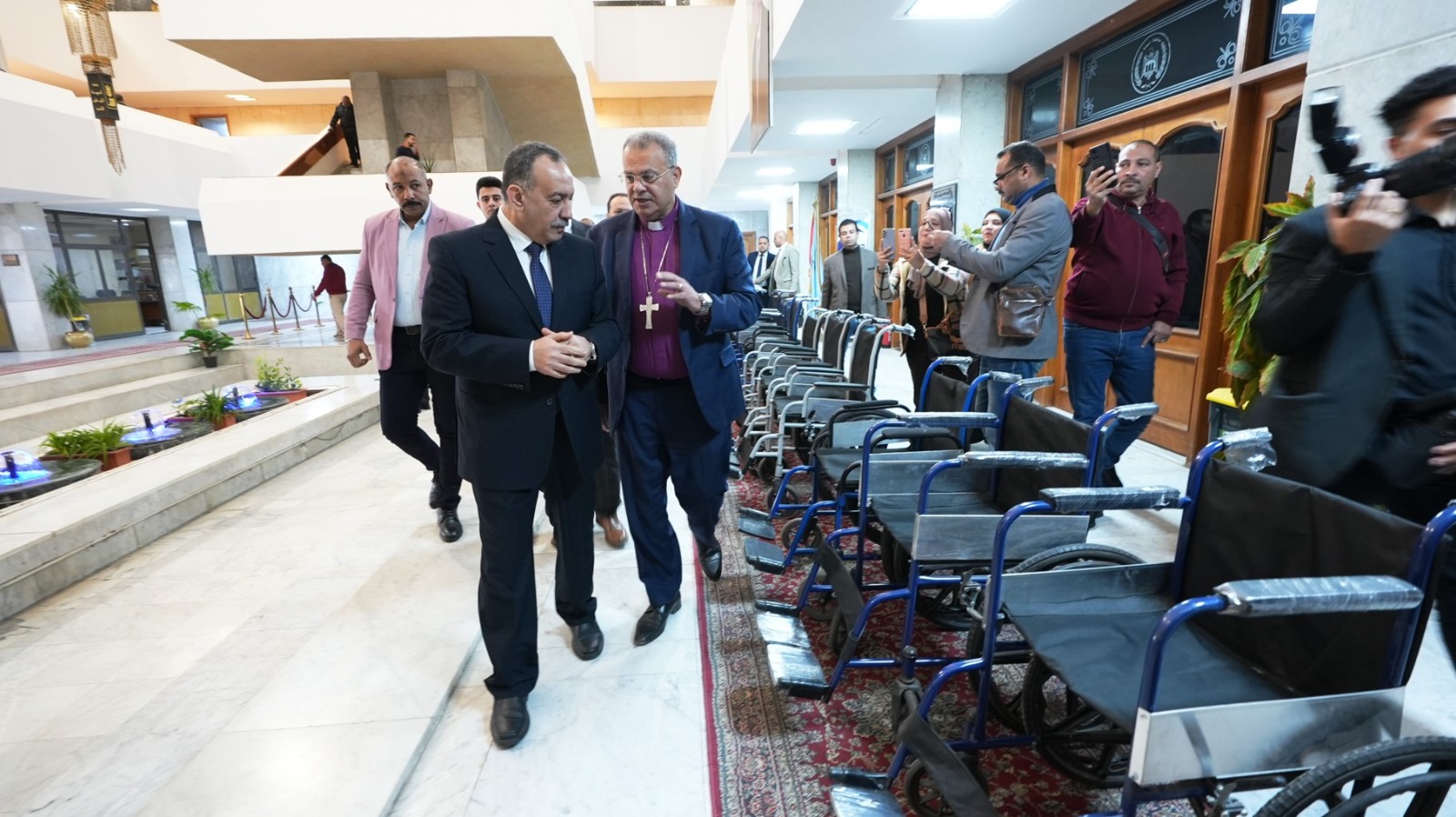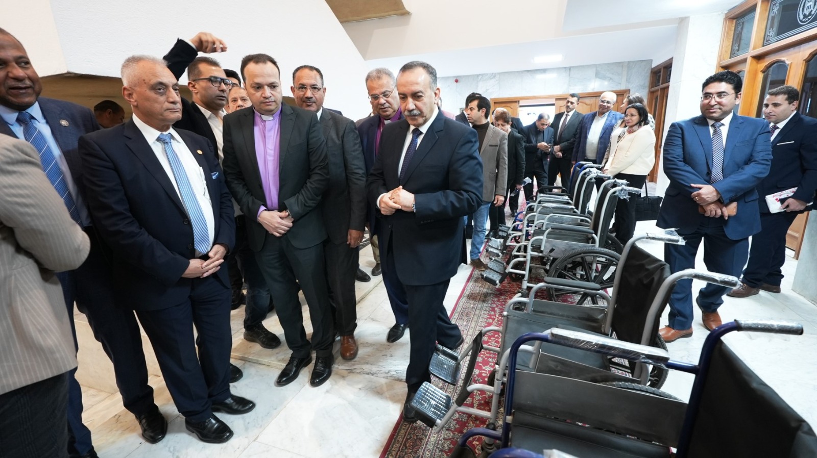 تسلم اللواء الدكتور هشام أبو النصر، محافظ أسيوط، عدد 30 كرسيًا متحركًا مقدمة من الهيئة القبطية الإنجيلية للخدمات الاجتماعية إلى مدارس التربية الفكرية على مستوى المحافظة.