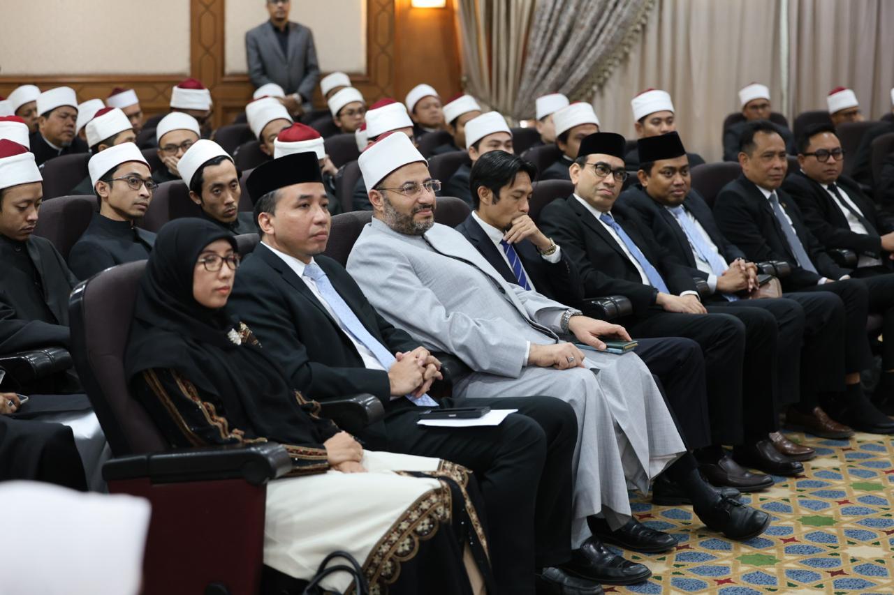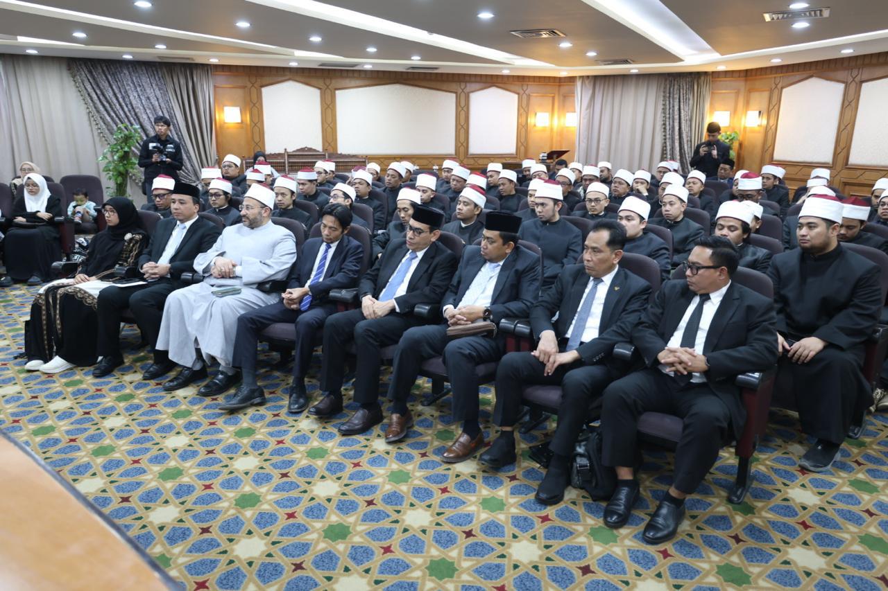 وخلال الحفل، ألقى الدكتور محمد الضويني كلمةً أكد فيها عمق العلاقة التي تجمع الأزهر الشريف وإندونيسيا، التي تقوم على أُخوَّة إسلامية راسخة، وأُسس متينة من التعاون العلمي والدعوي الهادف إلى نشر الفهم الصحيح للإسلام، وتعزيز الوسطية والاعتدال والتسامح، معتبرًا أن برنامج رعاية الطلاب الوافدين يأتي تطبيقًا عمليًا لهذه الرؤية، تنفيذًا لتوجيهات فضيلة الإمام الأكبر الأستاذ الدكتور أحمد الطيب، شيخ الأزهر الشريف، الذي يضع هذا الملف في صلب أولوياته، ويفتح أبواب الأزهر دائمًا لاستقبال أبناء الأمة الإسلامية من كل أرجاء العالم.