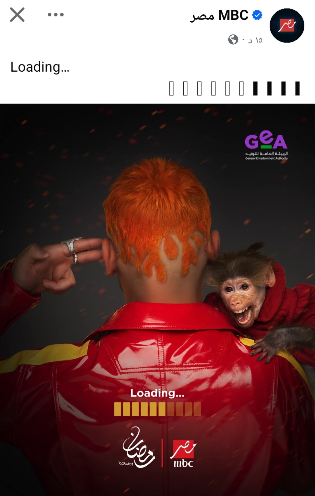 ونشرت الصفحة الرسمية لقناة mbc مصر، عبر موقع التواصل الاجتماعي فيسبوك، صورة البوستر الدعائي الأول لبرنامج رامز جلال في رمضان، وظهر فيها النجم رامز جلال من ظهره وكان على كتفه قرد.