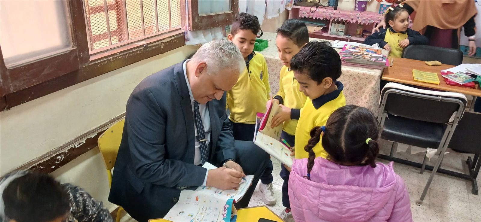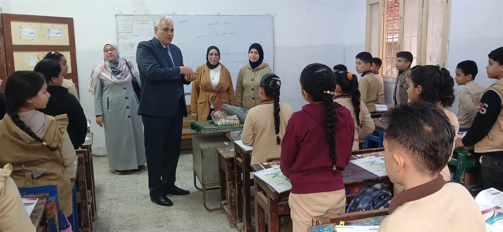 ورافق سيادته خلال الجولة الأستاذ ذكريا كحلة، مدير إدارة المتابعة بالإدارة، حيث أكد الدكتور خالد الدقلة على أهمية تكثيف الزيارات الميدانية لمتابعة انتظام الدراسة من اليوم الأول، والوقوف على مستوى إتقان الطلاب لمهارات القراءة والكتابة.