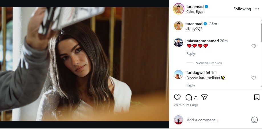 وكتبت تارا عماد من خلال حسابها الرسمي عبر موقع تبادل الصور والفيديوهات القصيرة إنستجرام: «كراميلا».