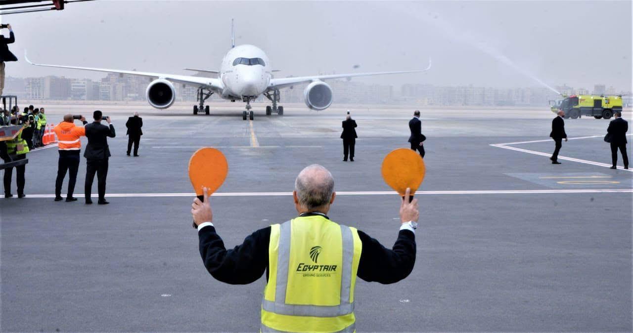 وصول أول طائرة لمصر للطيران من طراز إيرباص A350-900 إلى مطار القاهرة الدولي