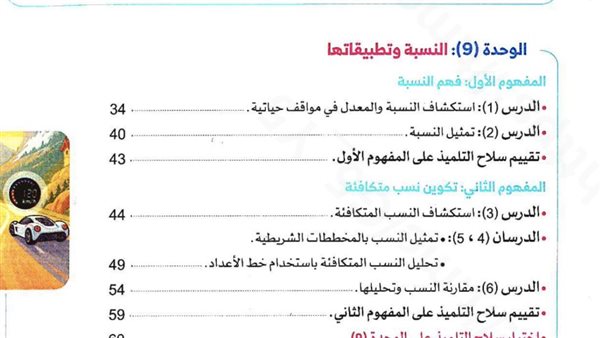 تتناول الوحدة التاسعة مفهوم النسبة باعتباره من المفاهيم الحياتية المهمة في الرياضيات.