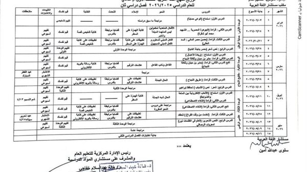 • تحديد الوحدات والفصول الدراسية لكل صف من الصف الأول إلى الصف الثالث الإعدادي.