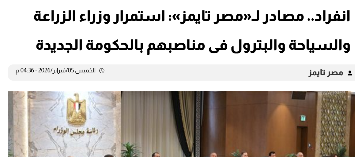 تأكيداً لانفراد «مصر تايمز».. استمرار وزراء الزراعة والسياحة والبترول فى مناصبهم رسميا