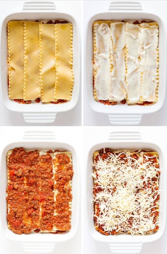 - احضرى صينية من البايركس، قومي بدهنها بكمية قليلة من البشاميل، ثم ضعي طبقة من اللازانيا وطبقة من اللحم المفروم، وكرري العملية مرة أخرى حتى تنتهى من المكونات لديك، وفى النهاية ضيفي طبقة من البشاميل والجبنة الموتزاريلا.