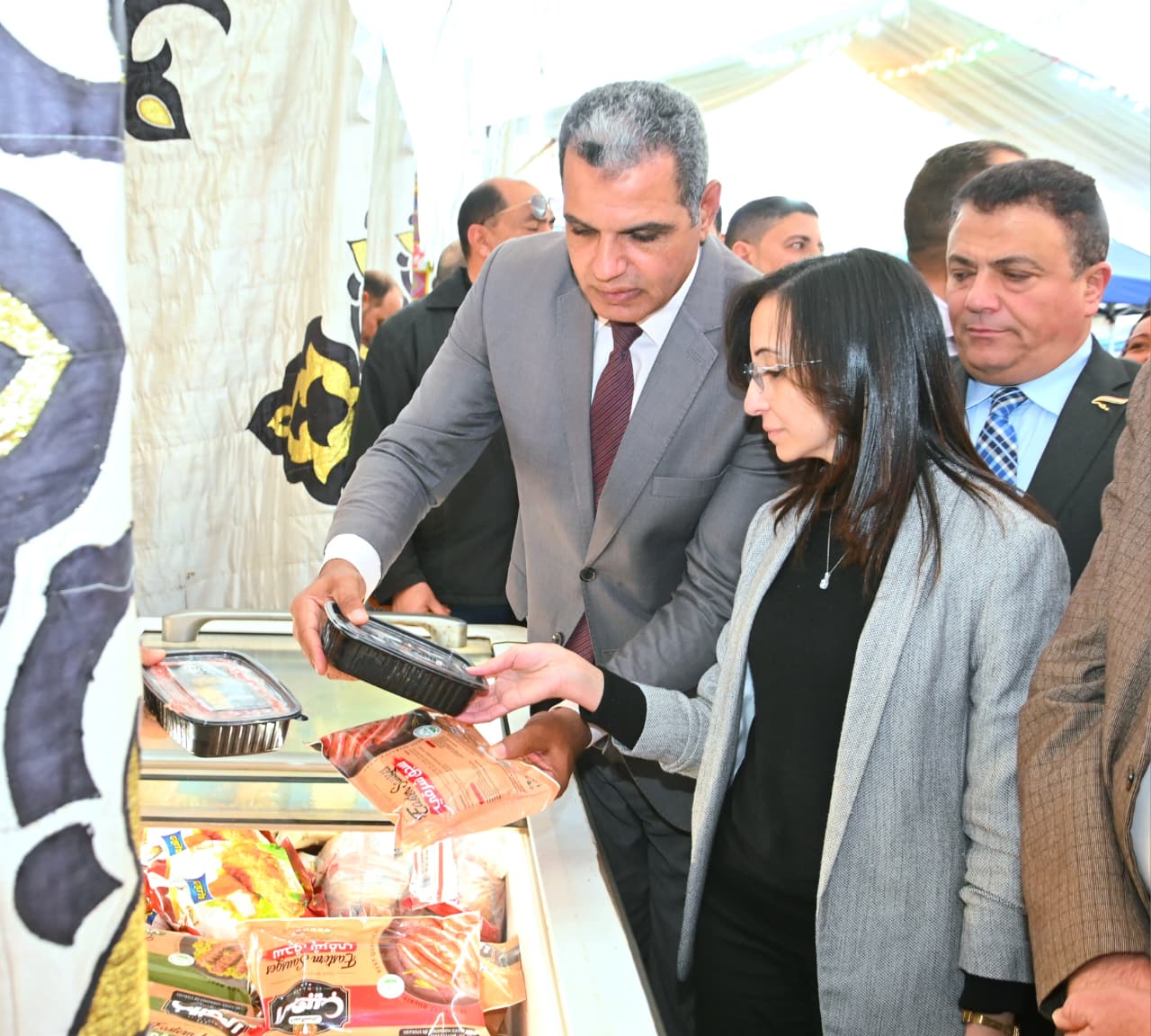 رافق المحافظ خلال الافتتاح اللواء حسن موافي السكرتير العام للمحافظة، والأستاذ محمد هدية وكيل وزارة التموين بالبحيرة، والأستاذ محمد الشريف رئيس الغرفة التجارية، وممثلو جهاز مستقبل مصر، والأستاذ محمد مسعود رئيس الوحدة المحلية لمركز ومدينة دمنهور، واللواء أحمد الحسيني رئيس جهاز حماية المستهلك، وممثلو هيئة سلامة الغذاء.